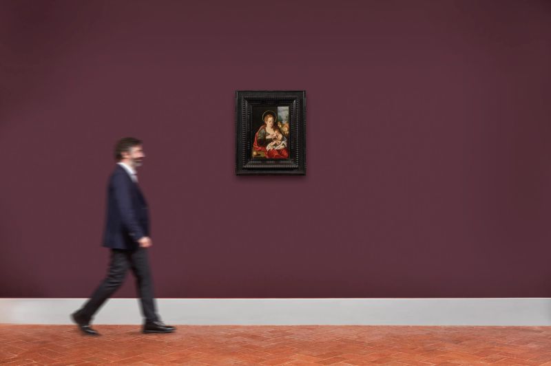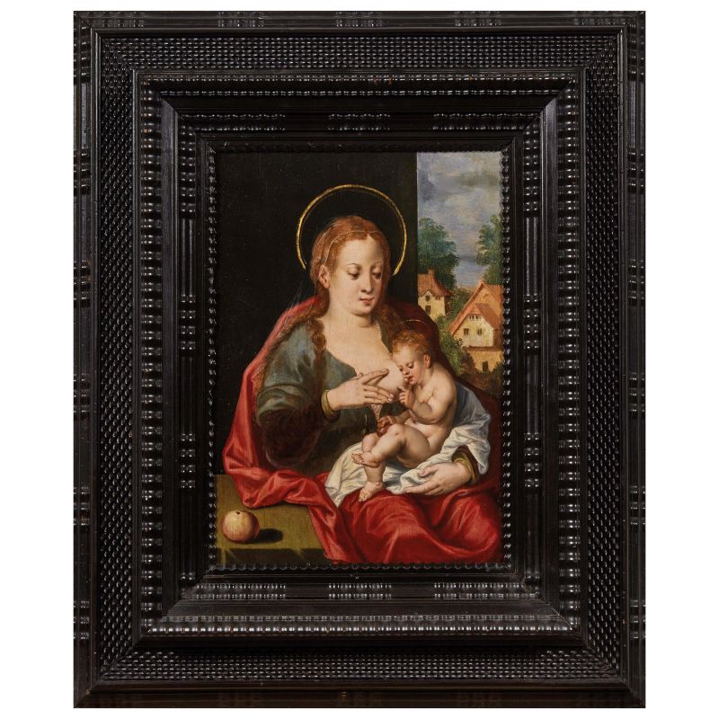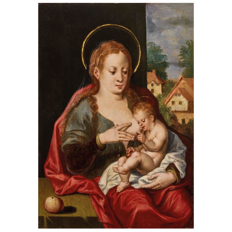Il cosiddetto Maestro del Pappagallo è un anonimo pittore probabilmente attivo ad Anversa tra gli anni Venti e gli anni Quaranta del Cinquecento, individuato da Max Friedlander nel 1949. È ipotizzabile che all'interno del catalogo di questo artista siano stati raccolti, in realtà, i nuclei di differenti pittori tutti afferenti alla bottega di Pieter Coecke van Aelst (1502-1550). In ogni caso, questa bottega è nota soprattutto per aver prodotto deliziose e raffinate tavole per la devozione privata come la Madonna con Bambino qui presentata.