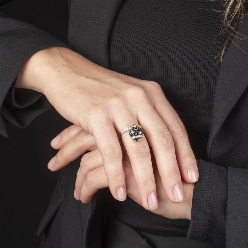 BLACK AND WHITE DIAMONDS CHANTECLER CAMPANELLA RING IN 18KT GOLD