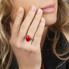 ANELLO CON CORALLO E DIAMANTI