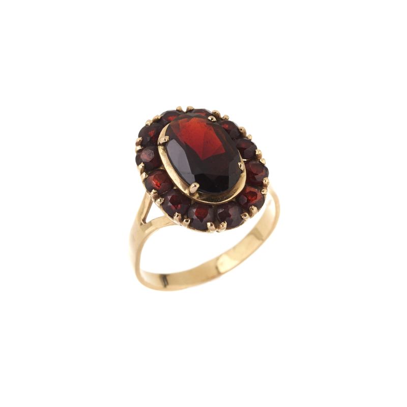 in oro giallo 18kt, con pietre arancioni sintetiche, punzoni 750 e del fabbricante, mis. 17/57, gr. 5