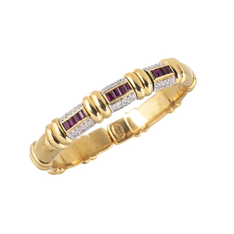 BRACCIALE RIGIDO CON DIAMANTI E RUBINI