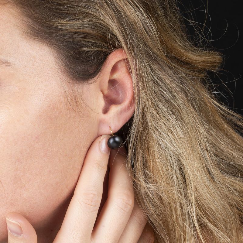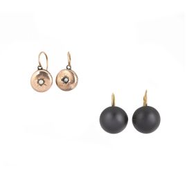 in oro giallo 18kt e in oro rosa 9kt, uno con perla e l'altro con bottone nero, chiusure a monachella, dim. cm 1x 0.7 circa, gr. 3