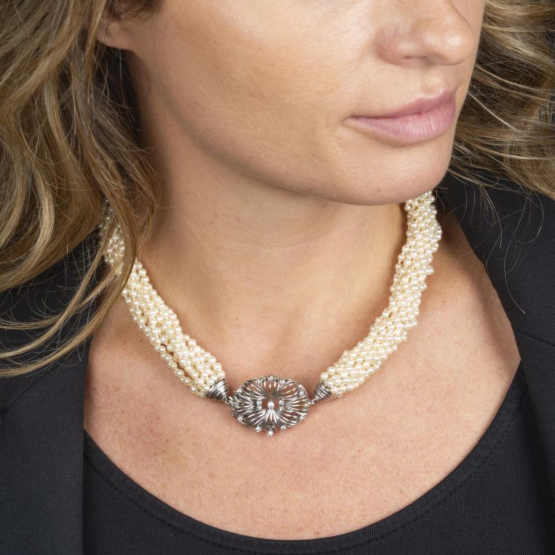 GIROCOLLO TORCHON DI PERLE E DIAMANTI