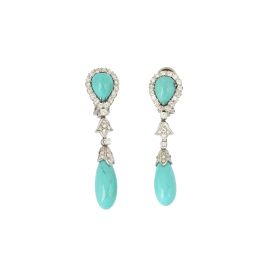 PAIR OF LONG EARRINGS WITH DIAMONDS AND TURQUOISE