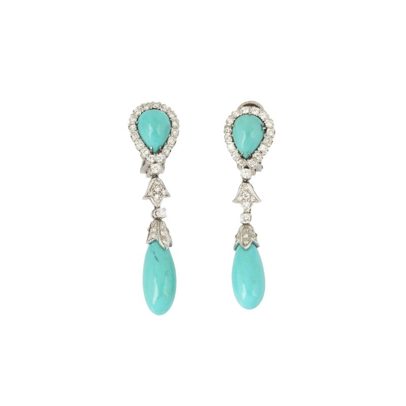 PAIO DI LUNGHI ORECCHINI CON DIAMANTI E TURCHESE