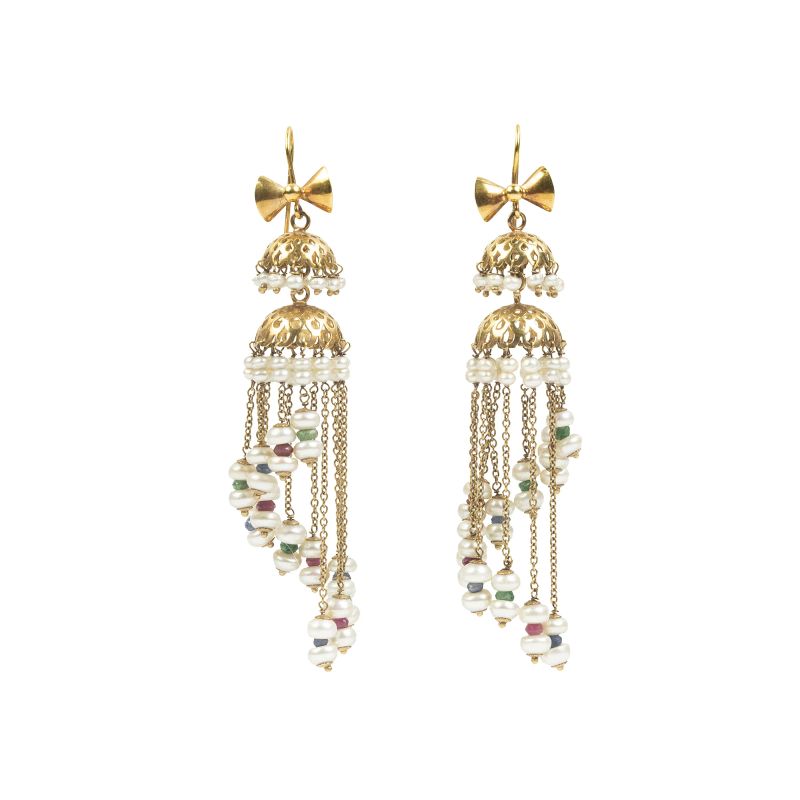 PAIR OF LONG EARRINGS WITH PEARLS AND PRECIOUS STONES