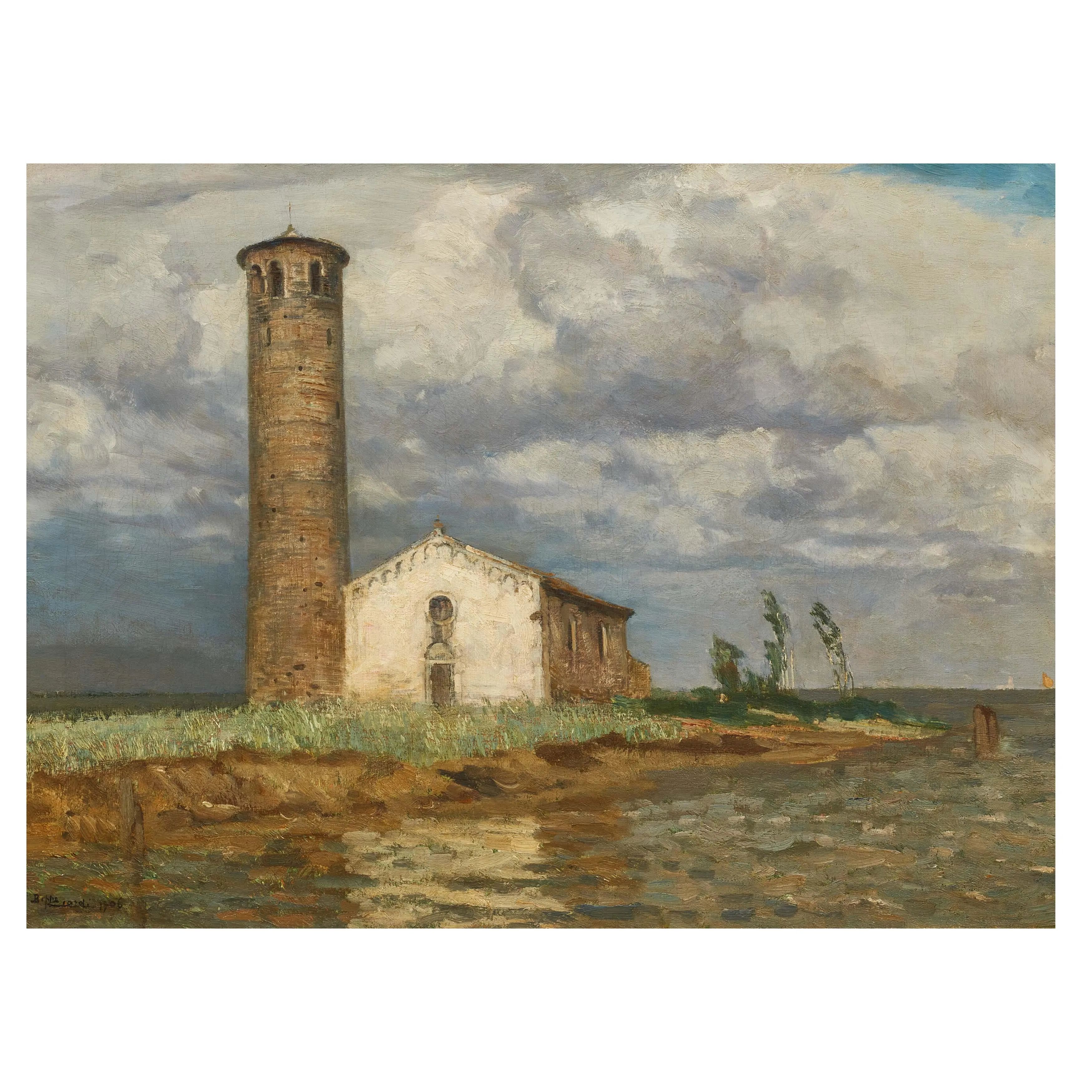 on the reverse: signed and dated "1906"; on the stretch: inscribed "Antica chiesa di TESSERA"