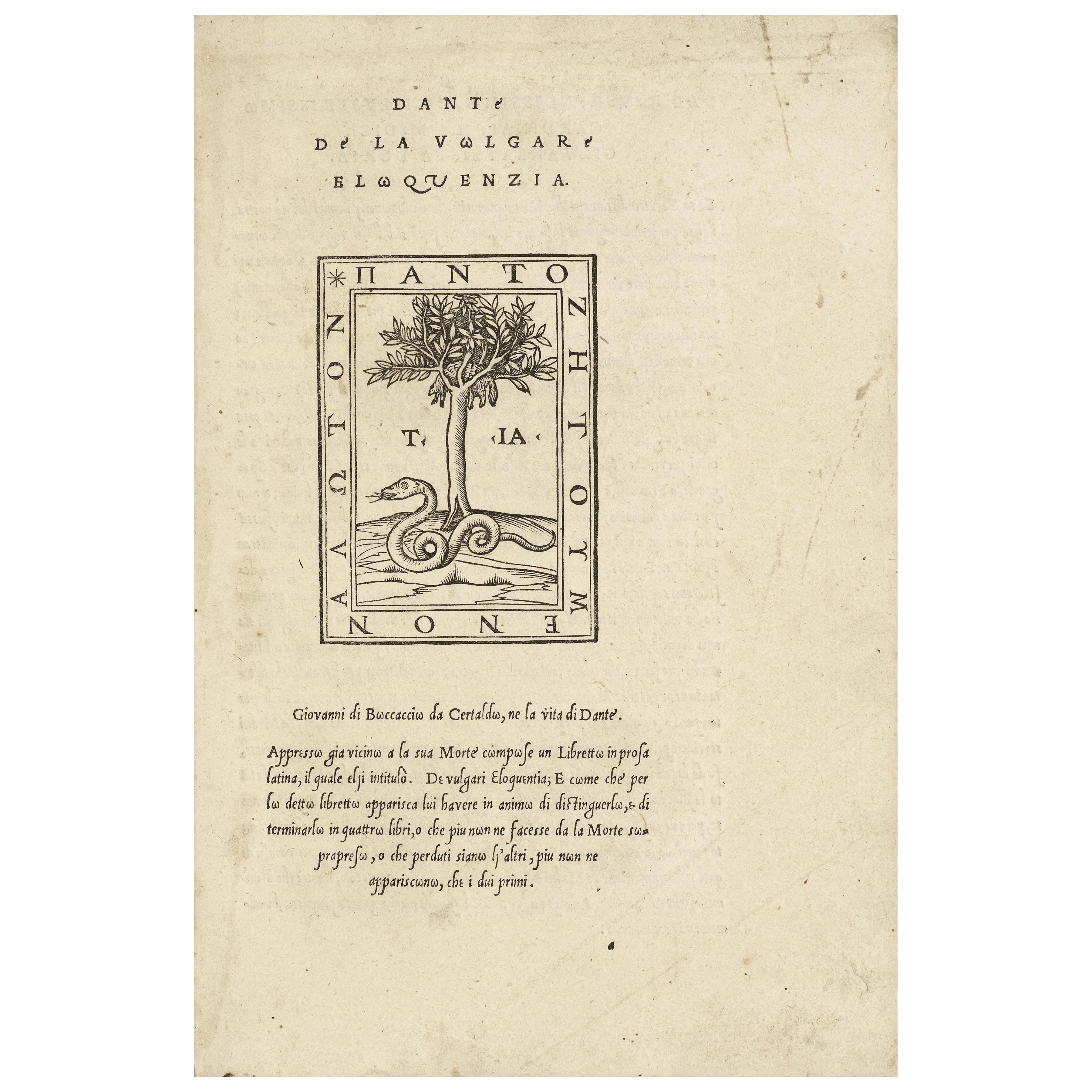 Dante. De la volgare eloquenzia. Vicenza, Janiculo, 1529.