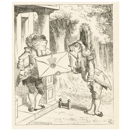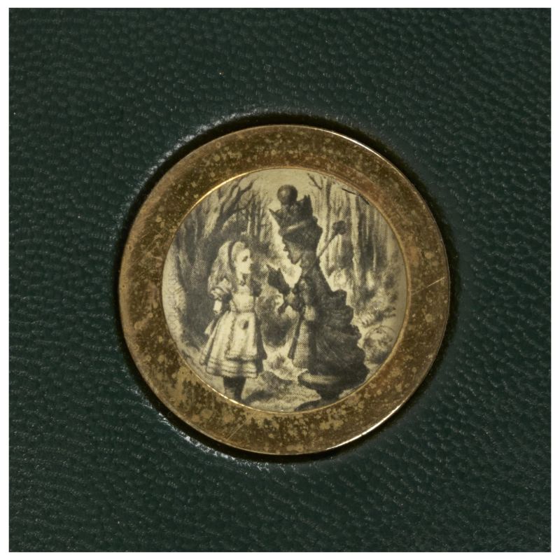 In quarto (190 x 125 mm); [12], 192 pagine. Quarantadue illustrazioni di John Tenniel (bruniture sparse, qualche disegno a matita, alcune macchie, piccoli strappi.) Legatura moderna d’amatore, sui piatti cornice di filetto dorato e inserto di metallo dorato con incisione sottovetro.