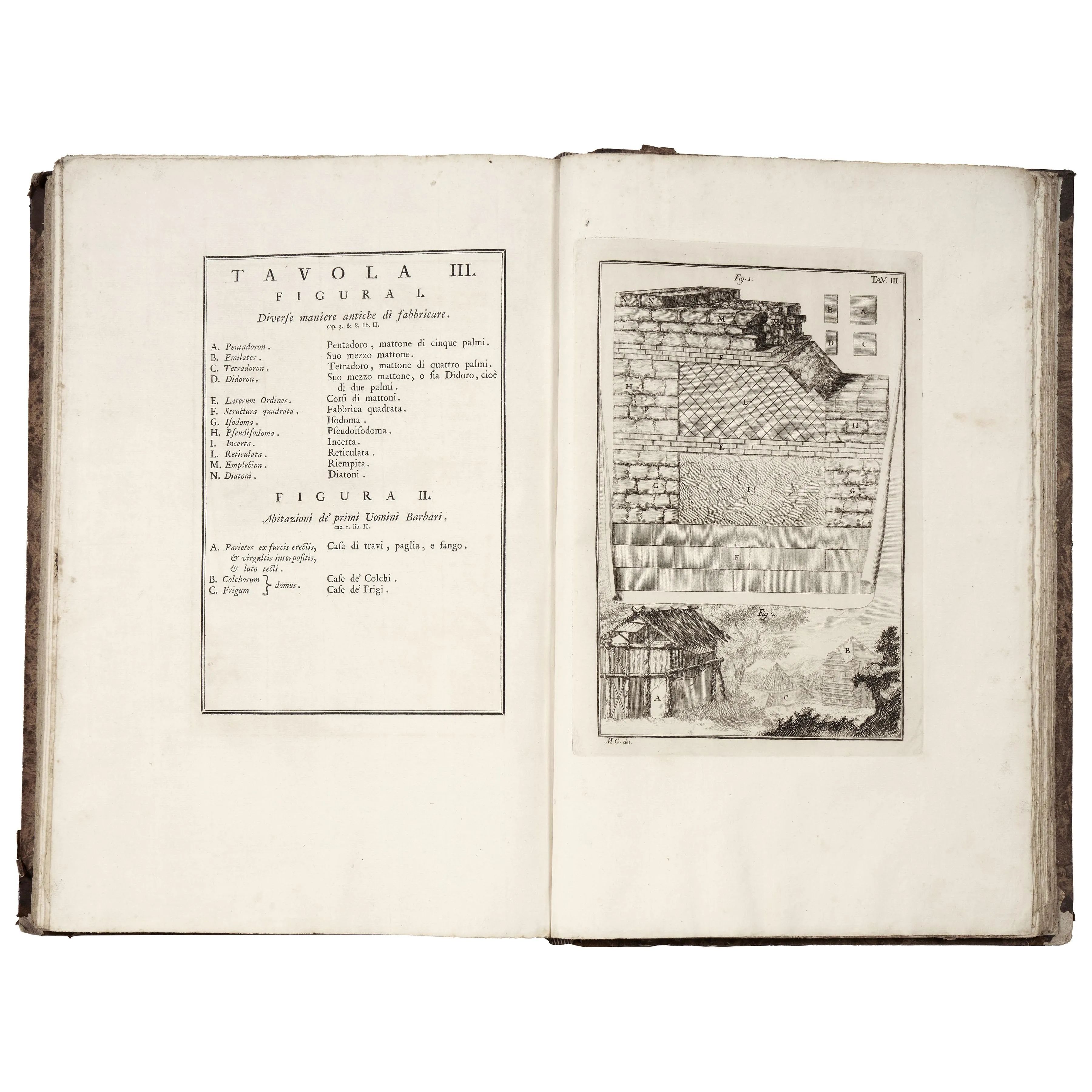 In folio (415 x 275 mm); [8], XXXII, 462, [2] pagine. Antiporta incisa in rame, testata calcografica con il ritratto del dedicatario dell’opera, 25 tavole incise con relativi testi di spiegazione (qualche fioritura e arrossatura, foro di tarlo su poche carte.) Legatura degli inizi del XIX secolo in mezza pelle, dorso liscio con titolo in oro entro cartiglio arancione. Ex libris Giulio Segantini.
