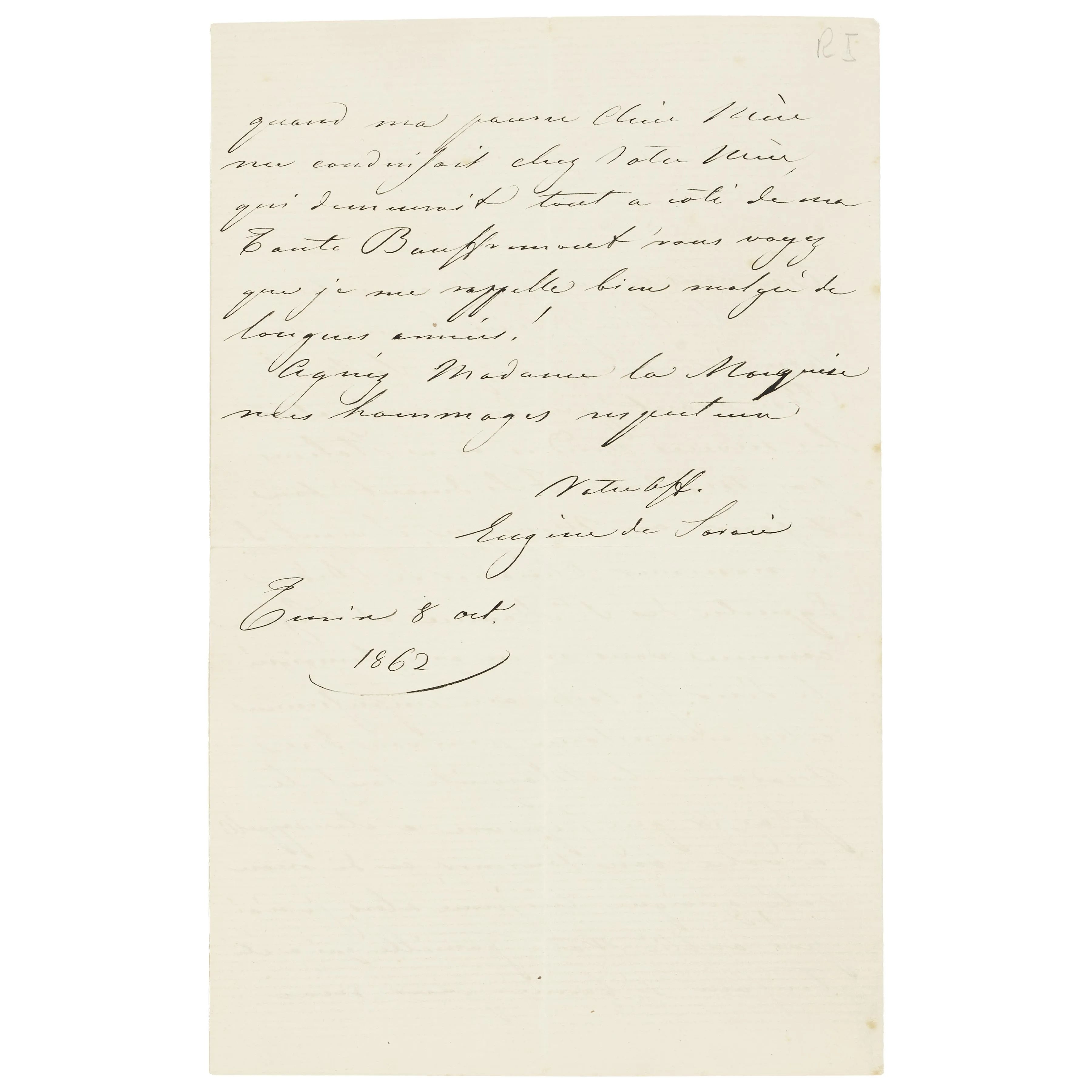 Lotto composto dalle seguenti lettere: una autografa di Eugenio di Savoia, Principe di Carignano di due pagine in ottavo datata 1862, una di Terenzio Mamiani indirizzata ad un ‘Carlino caro’ del 1848, una lettera autografa di due pagine in quarto di Francesco Zambeccari, e una bella lettera di 3 pagine in quarto di Giovanni Berchet. In aggiunta nel lotto anche una lettera di Guido da Verona.