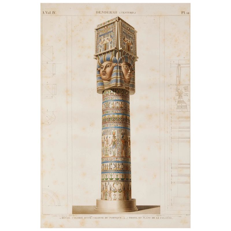 La Description de l’Égypte costituisce uno dei progetti editoriali più grandiosi del XIX secolo, un capolavoro assoluto dell’illustrazione scientifica e, al tempo stesso, uno dei primi e più approfonditi studi sistematici sull’Egitto antico e moderno. La sua pubblicazione suscitò un entusiasmo senza precedenti per la civiltà egizia, la cui influenza si diffuse rapidamente nelle arti decorative, nell’architettura e nella moda, dando vita al celebre stile “retour d’Égypte”.