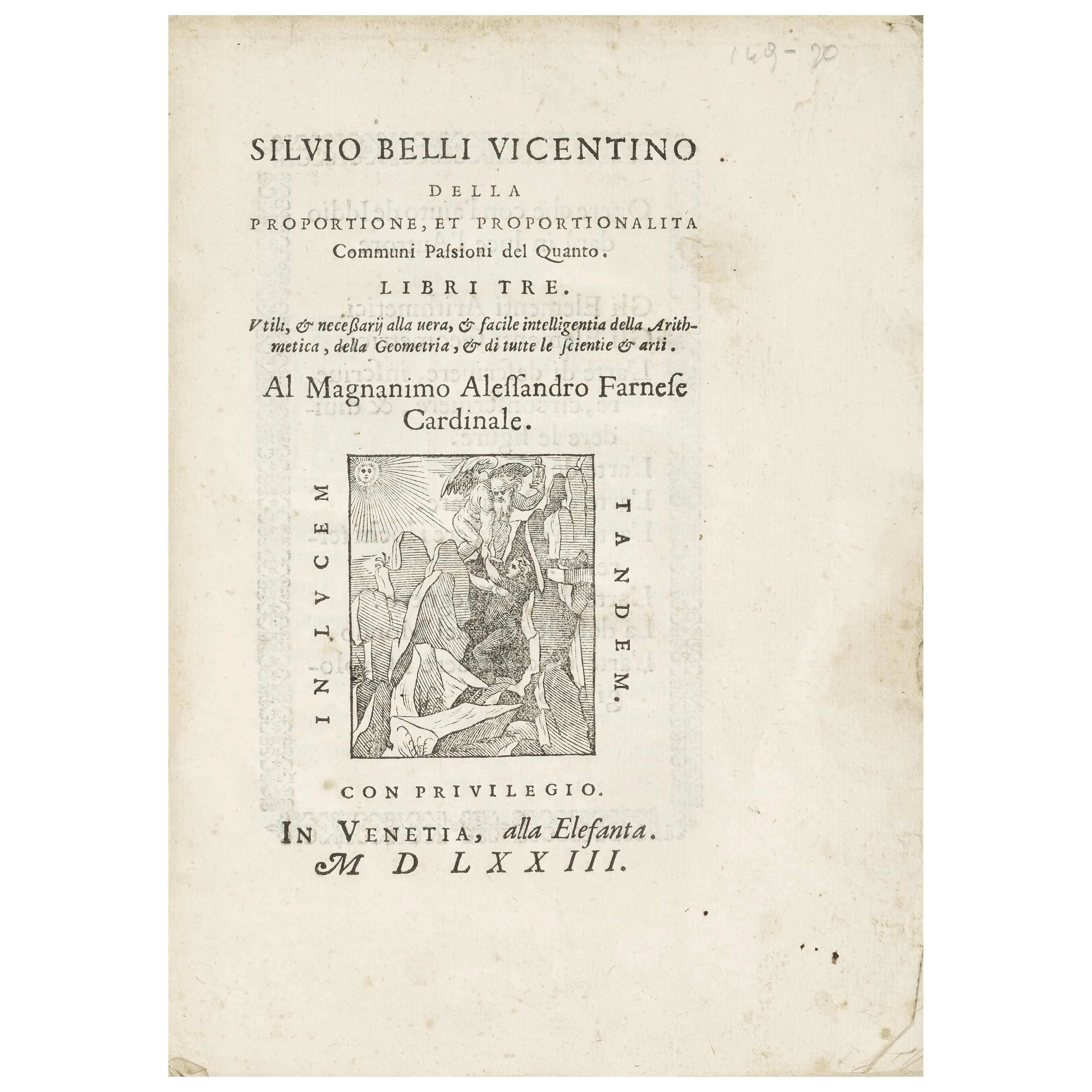 Belli, Silvio. Della proportione, et proportionalità communi passioni del quanto. Venezia, alla Elefanta, 1573.