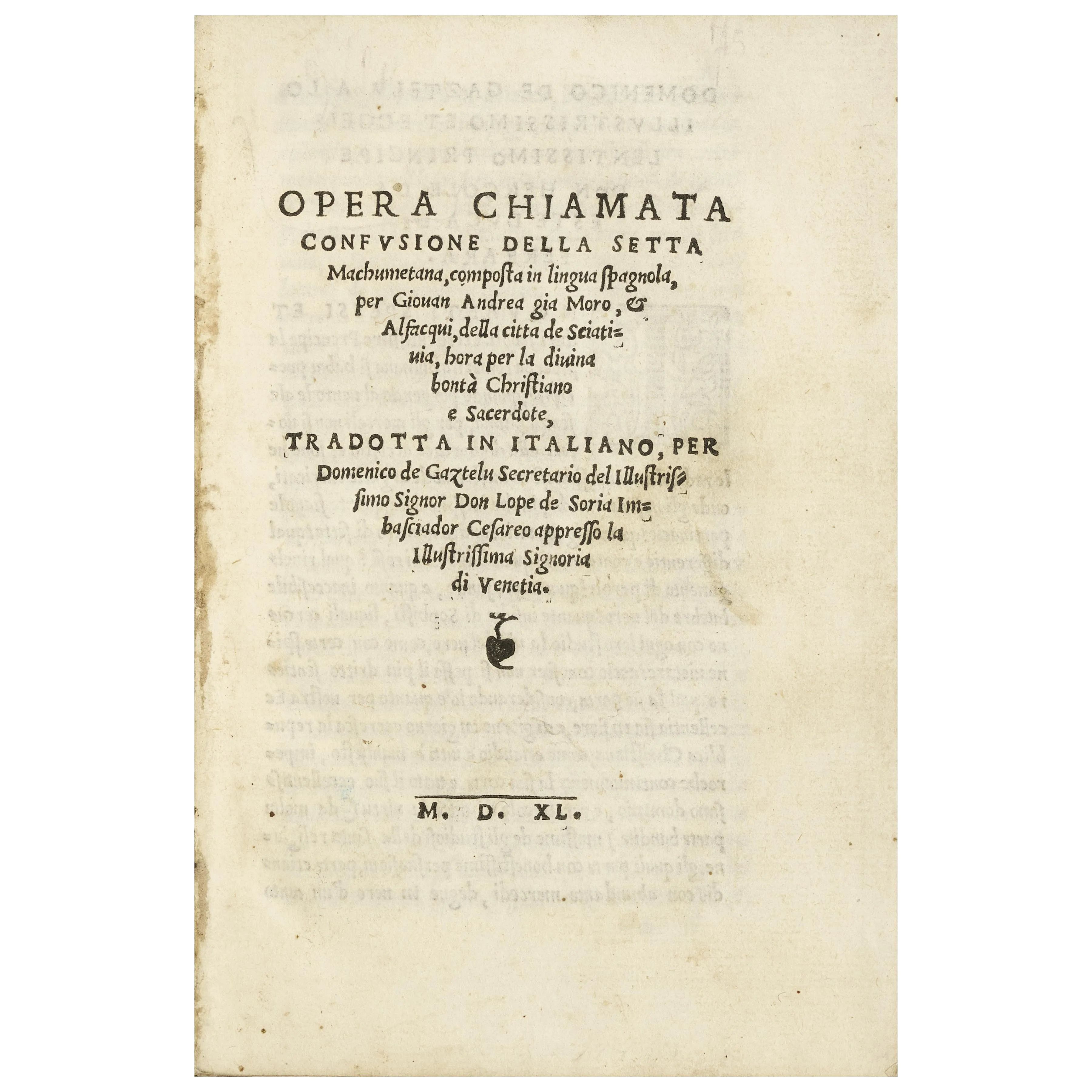 Andres, Juan. Opera chiamata confusione della setta Machumetana. Siviglia [ma Venezia], 1540.