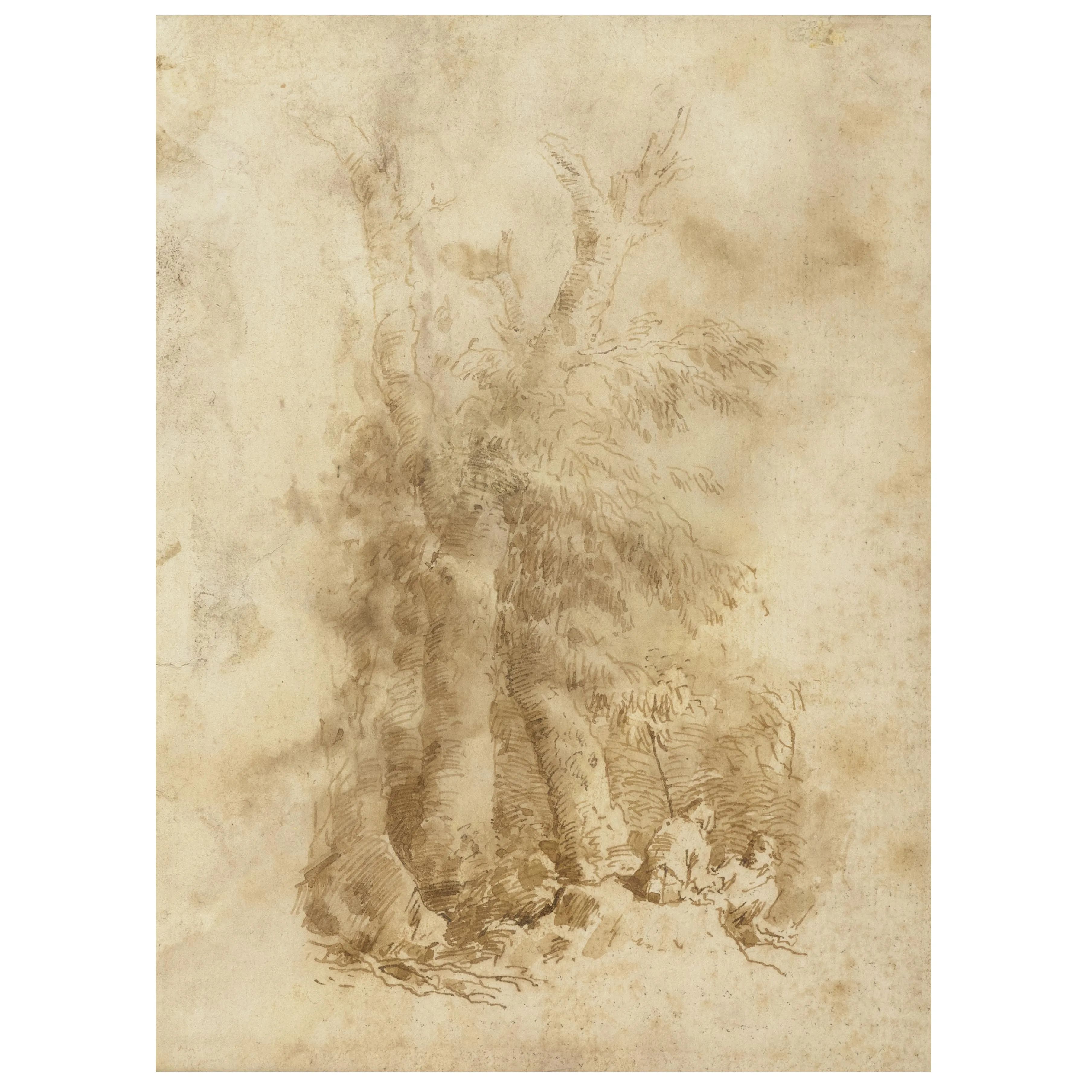 coppia di disegni, penna, inchiostro bruno e bistro, mm 174x130