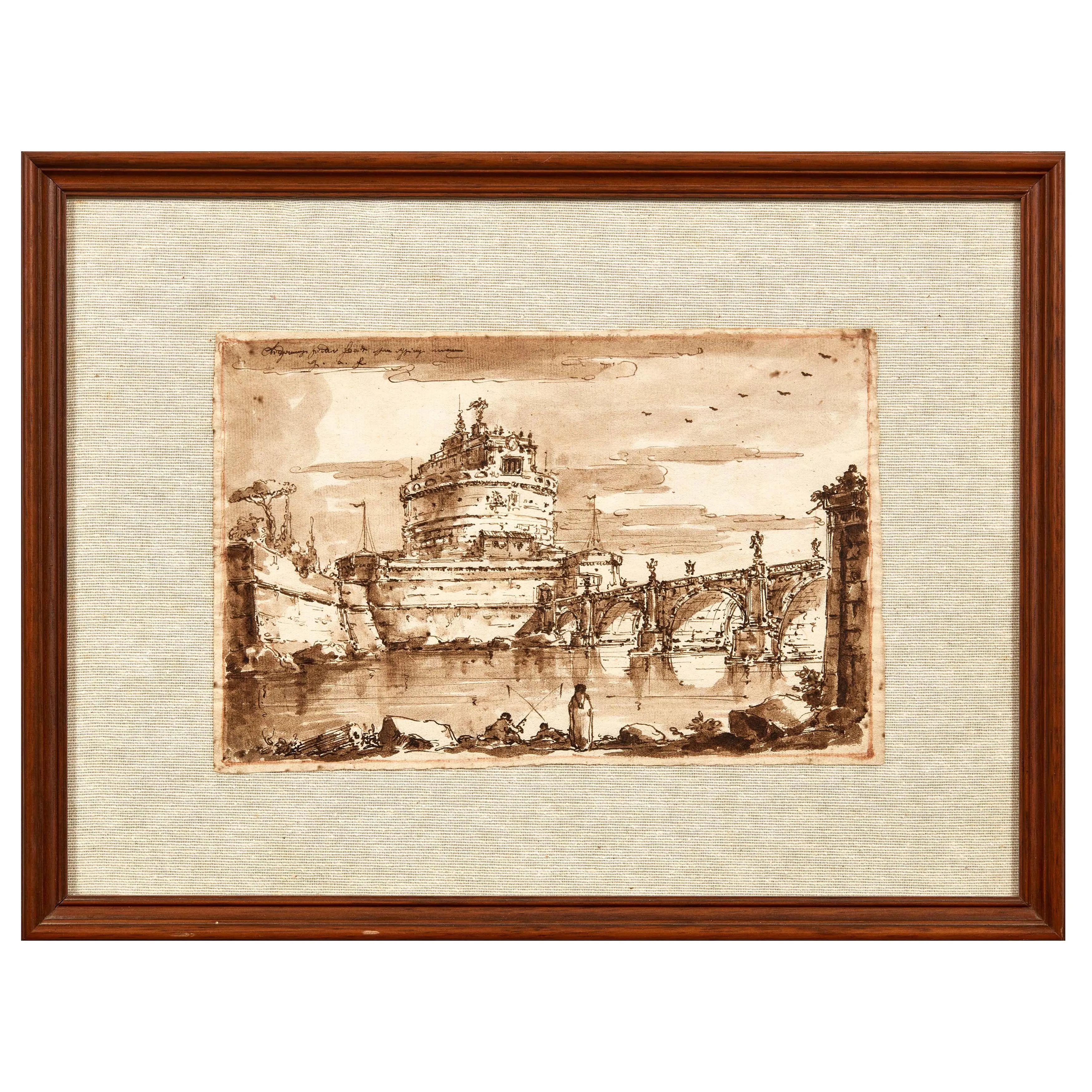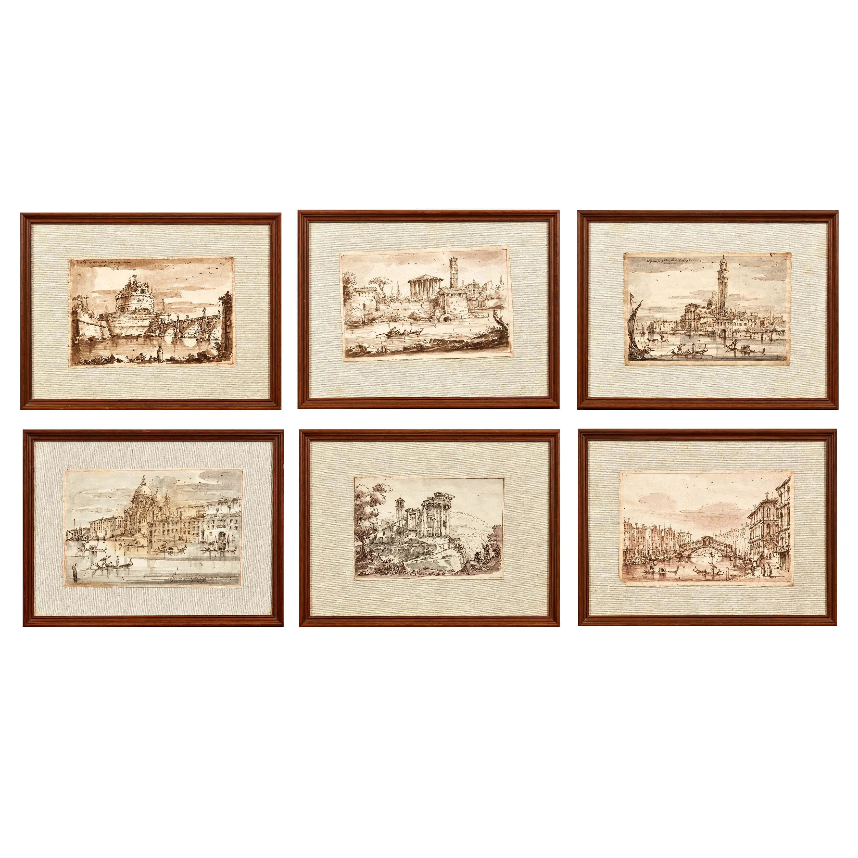 serie di sei disegni, penna, inchiostro bruno e bistro, mm 180x261