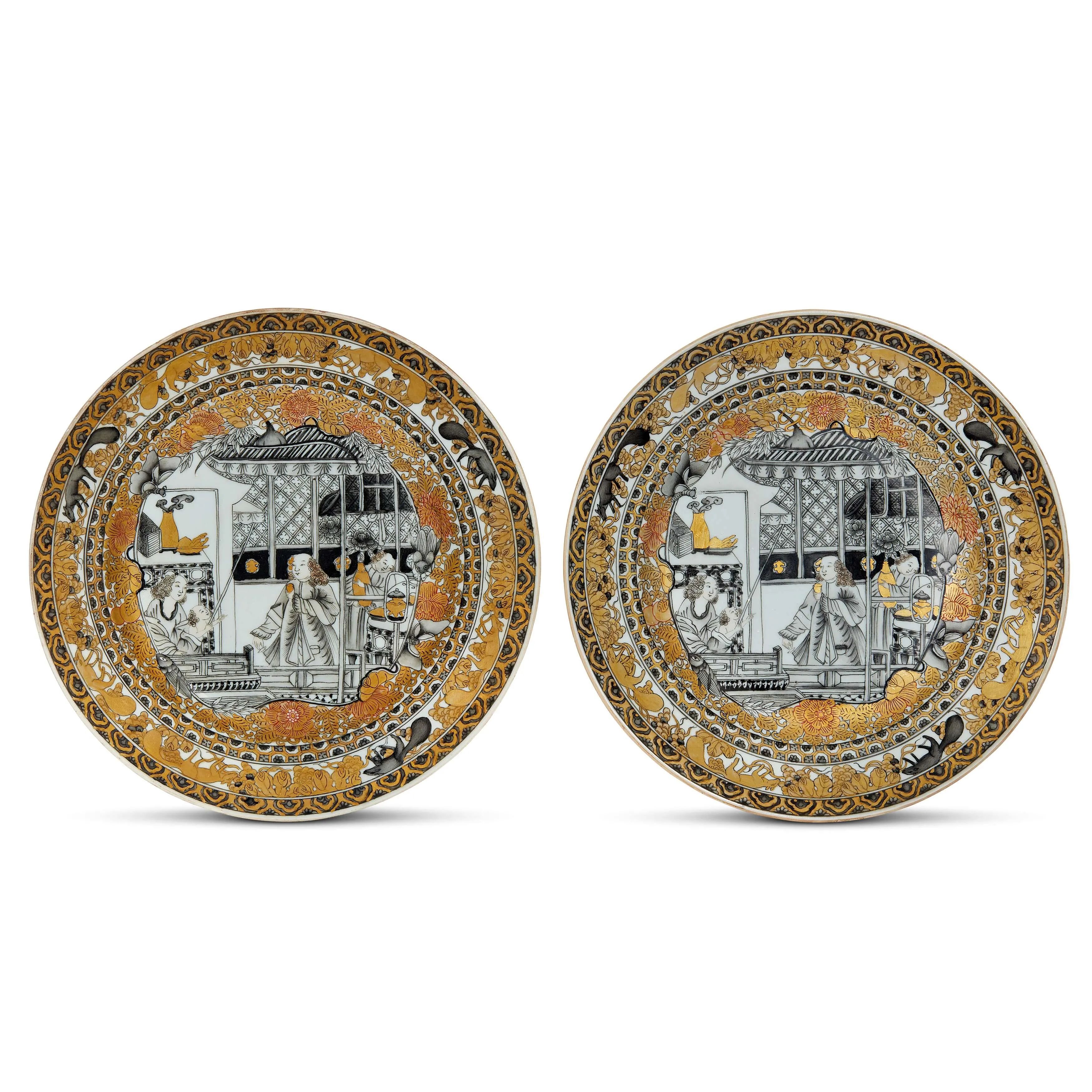 COPPIA DI PIATTINI IN PORCELLANA DORATA E ARGENTATA, CINA, DINASTIA QING, SEC. XVIII