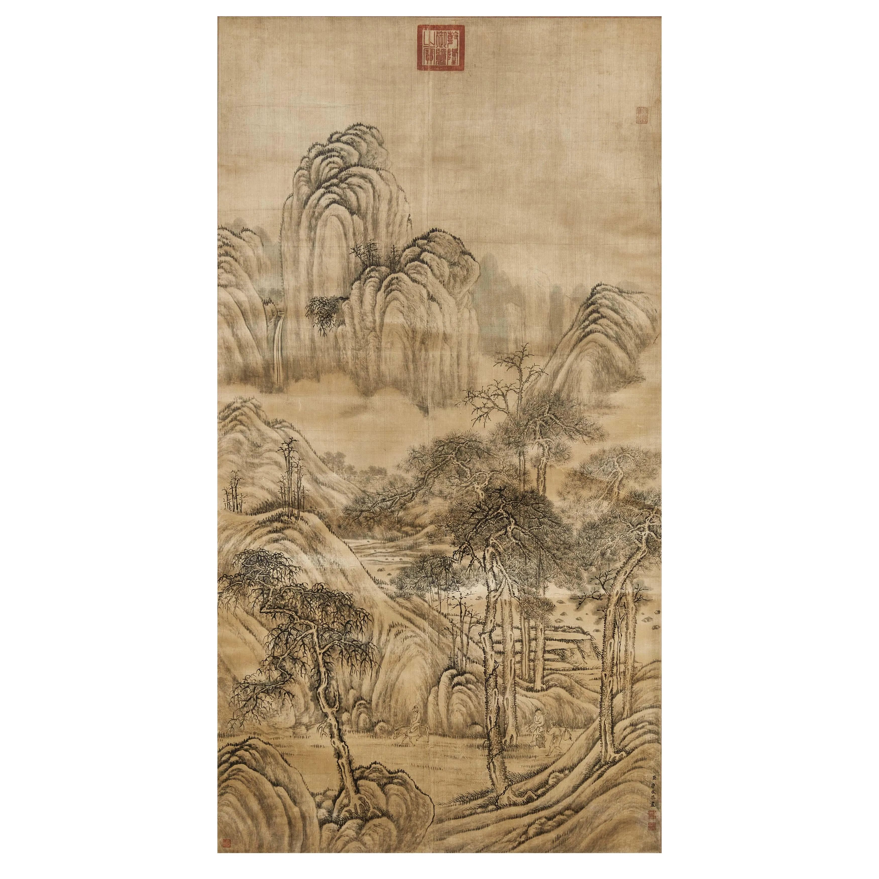 清 十八世纪 唐岱款绢本山水画 尺寸67×143厘米