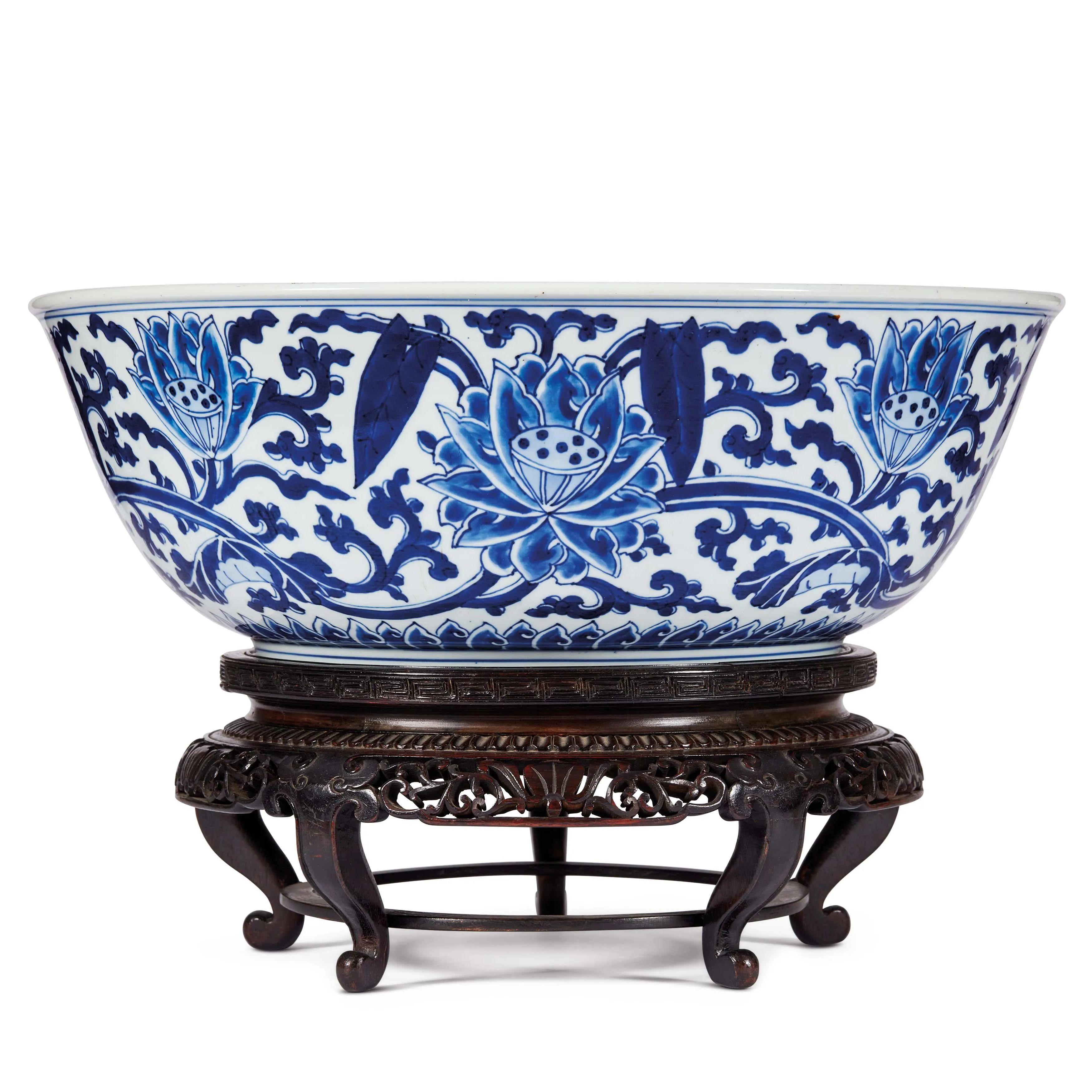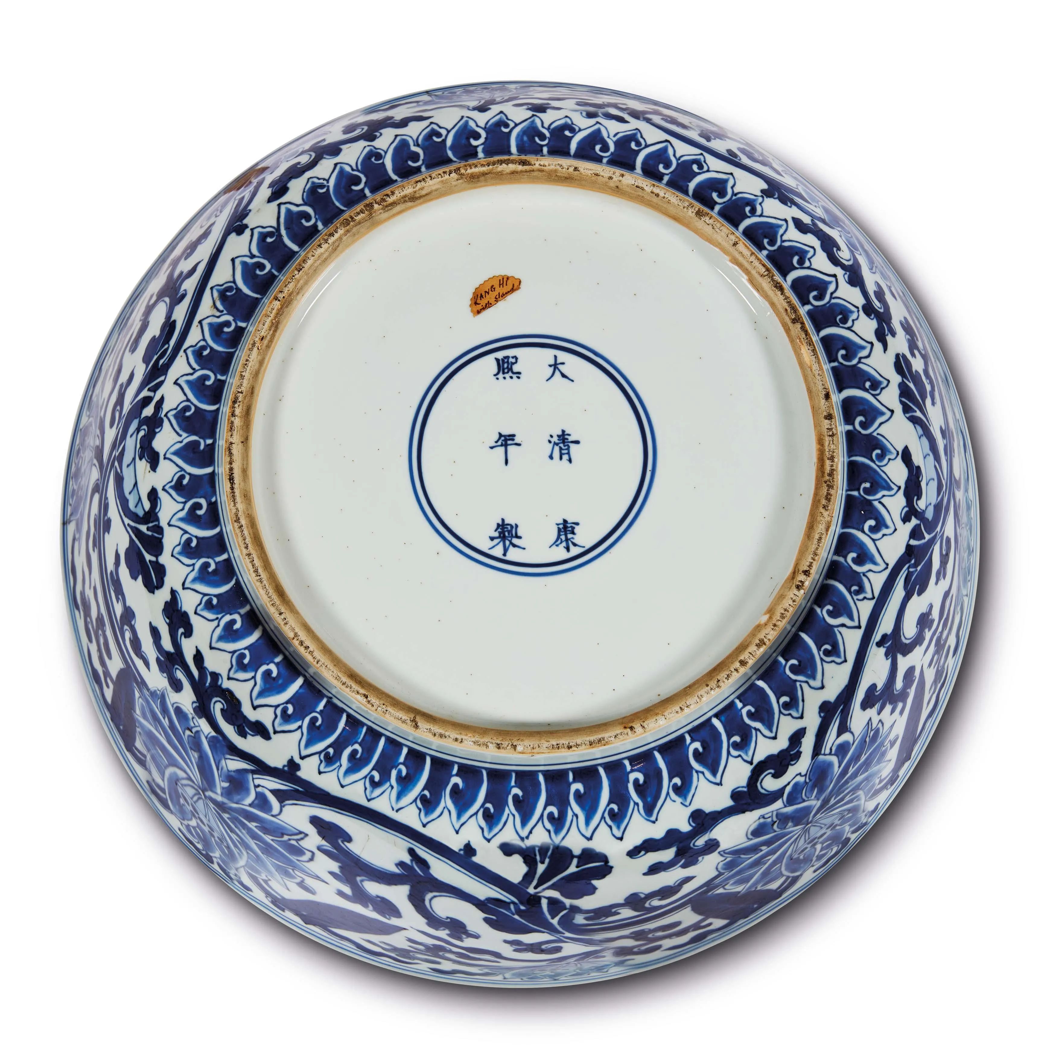 清 十八-十九世纪 青花缠枝莲花纹大碗 《大清康熙年製》款 直径42厘米