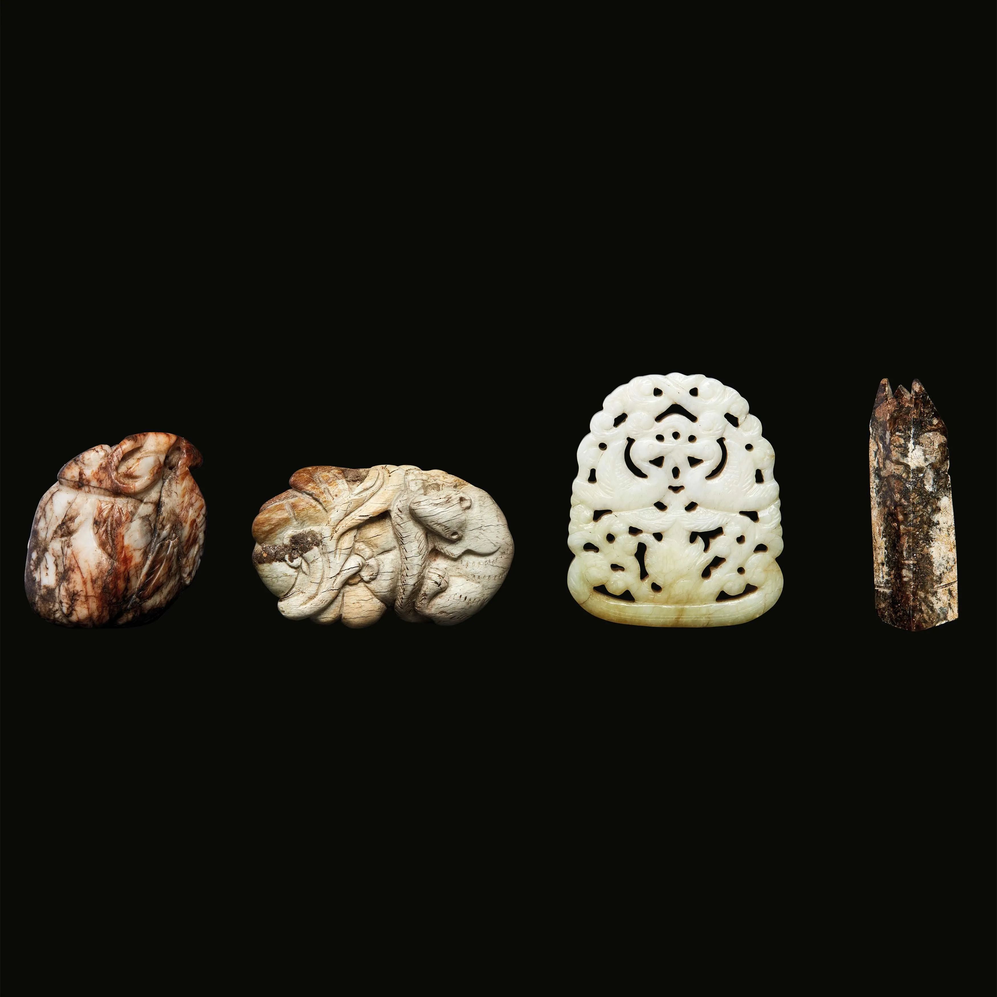 GRUPPO DI QUATTRO GIADA ANTICHE, CINA, DINASTIA QING, SEC. XIX