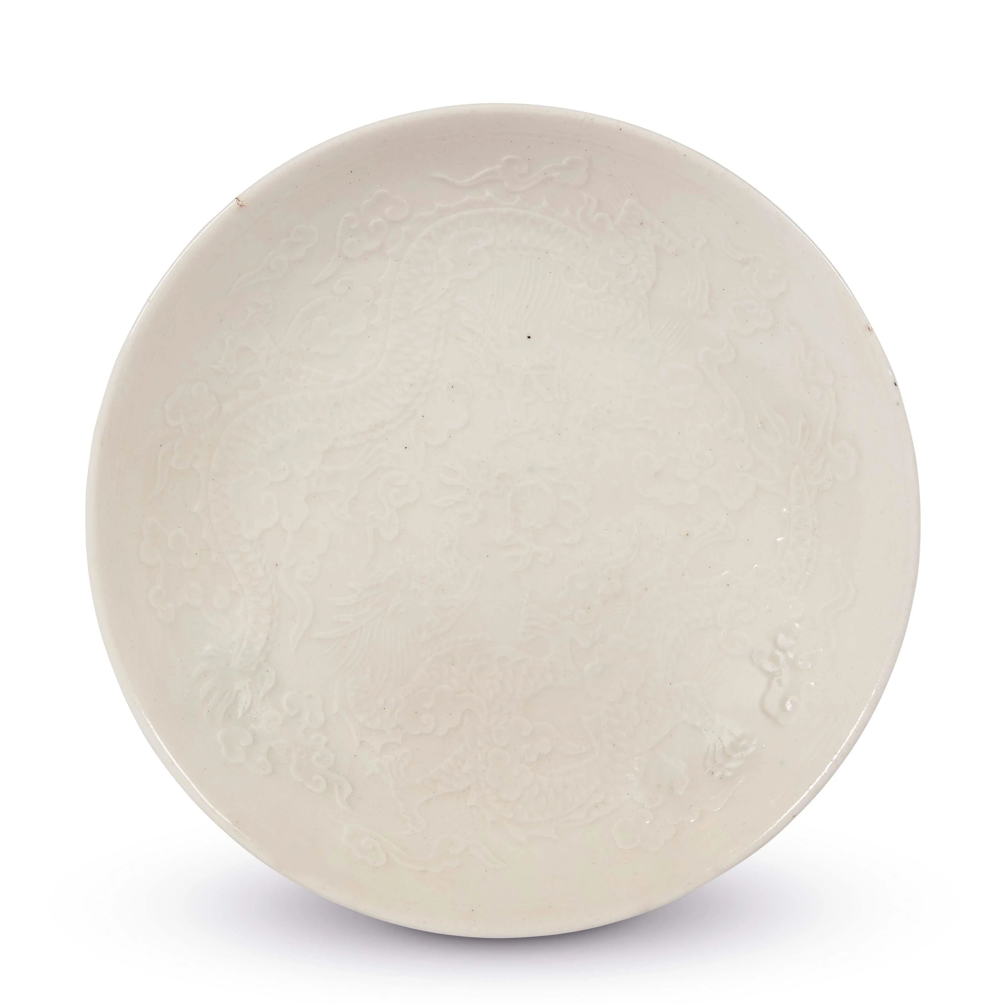 宋 十三世纪 白釉模印二龙戏珠纹盘 直径16厘米