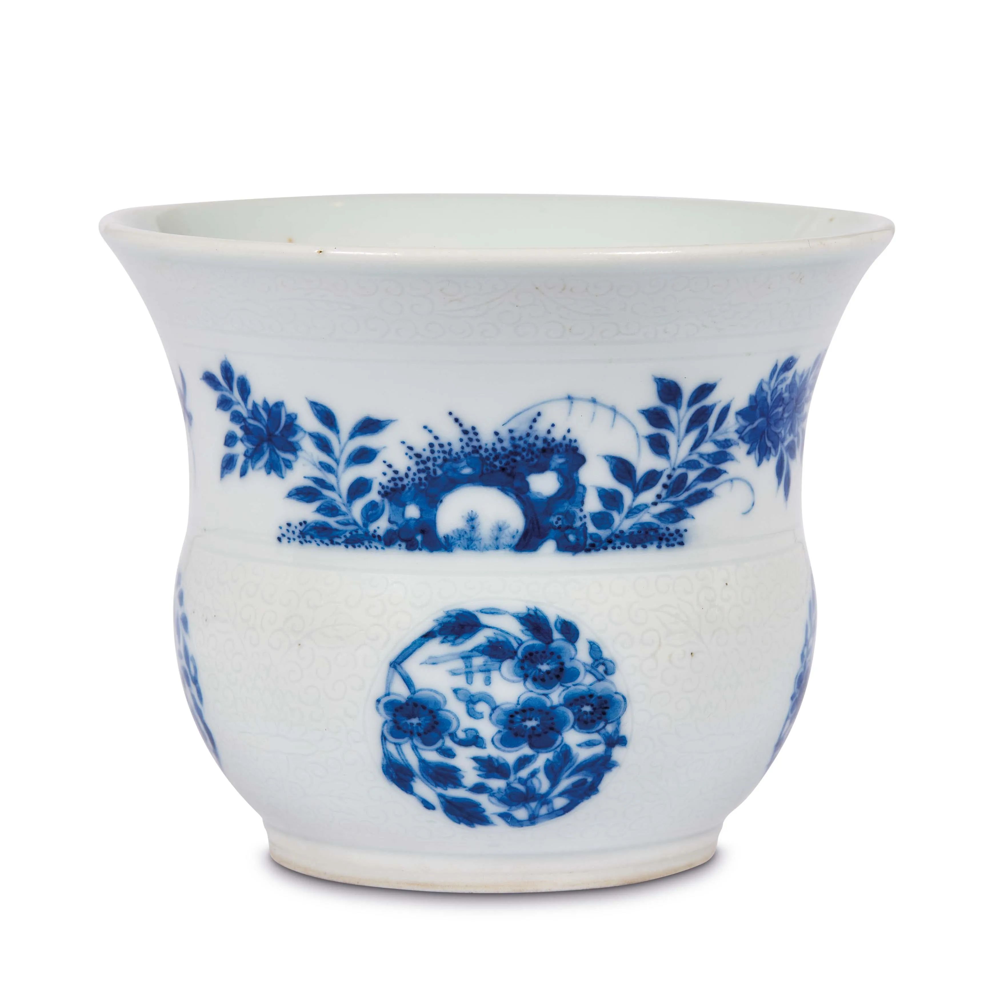 清 十七世纪 青花洞石花卉纹暗刻渣斗 高9厘米