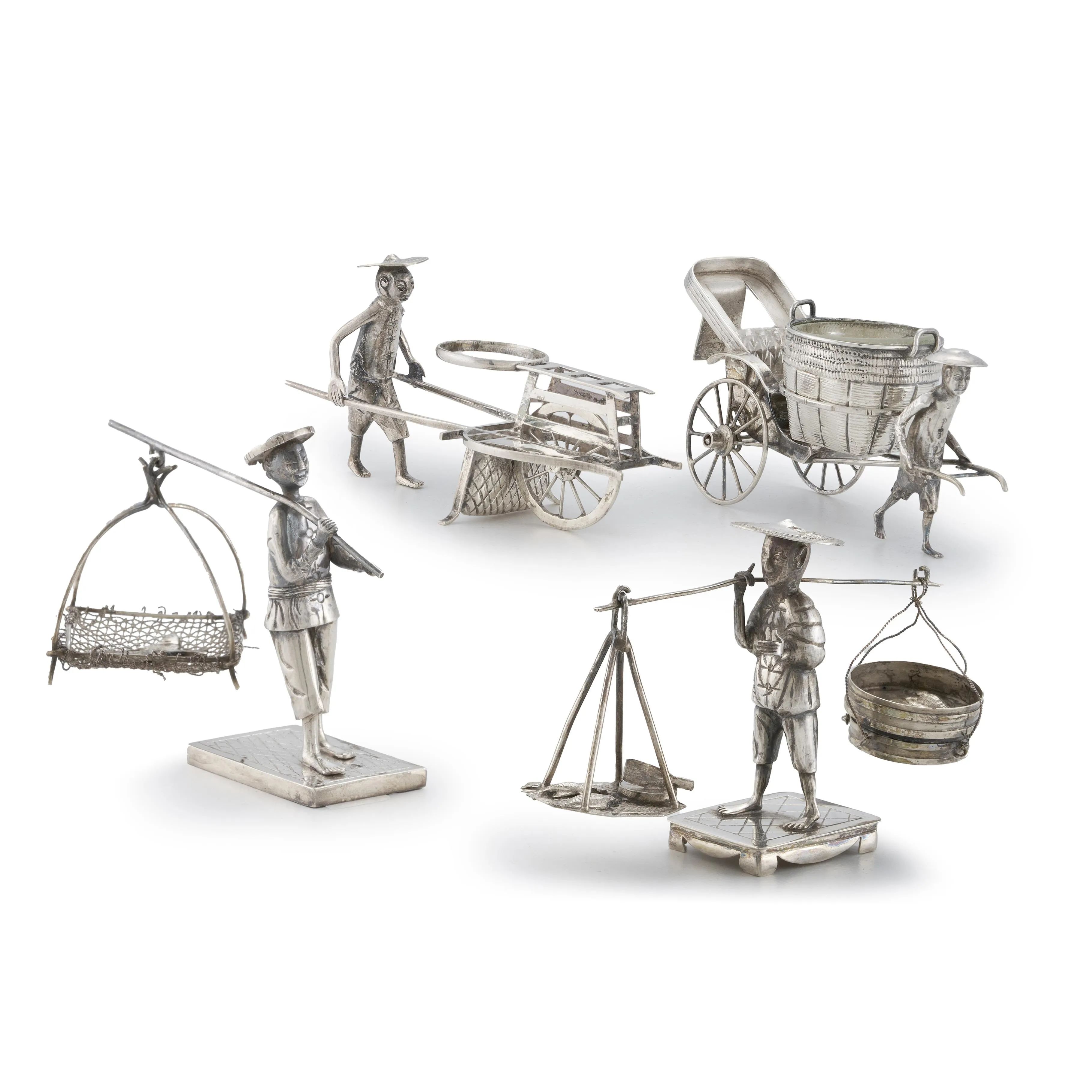 DUE MODELLINI DI PESCATORI, CINA, INIZI SECOLO XX, ARGENTIERI WANG HING & COMPANY