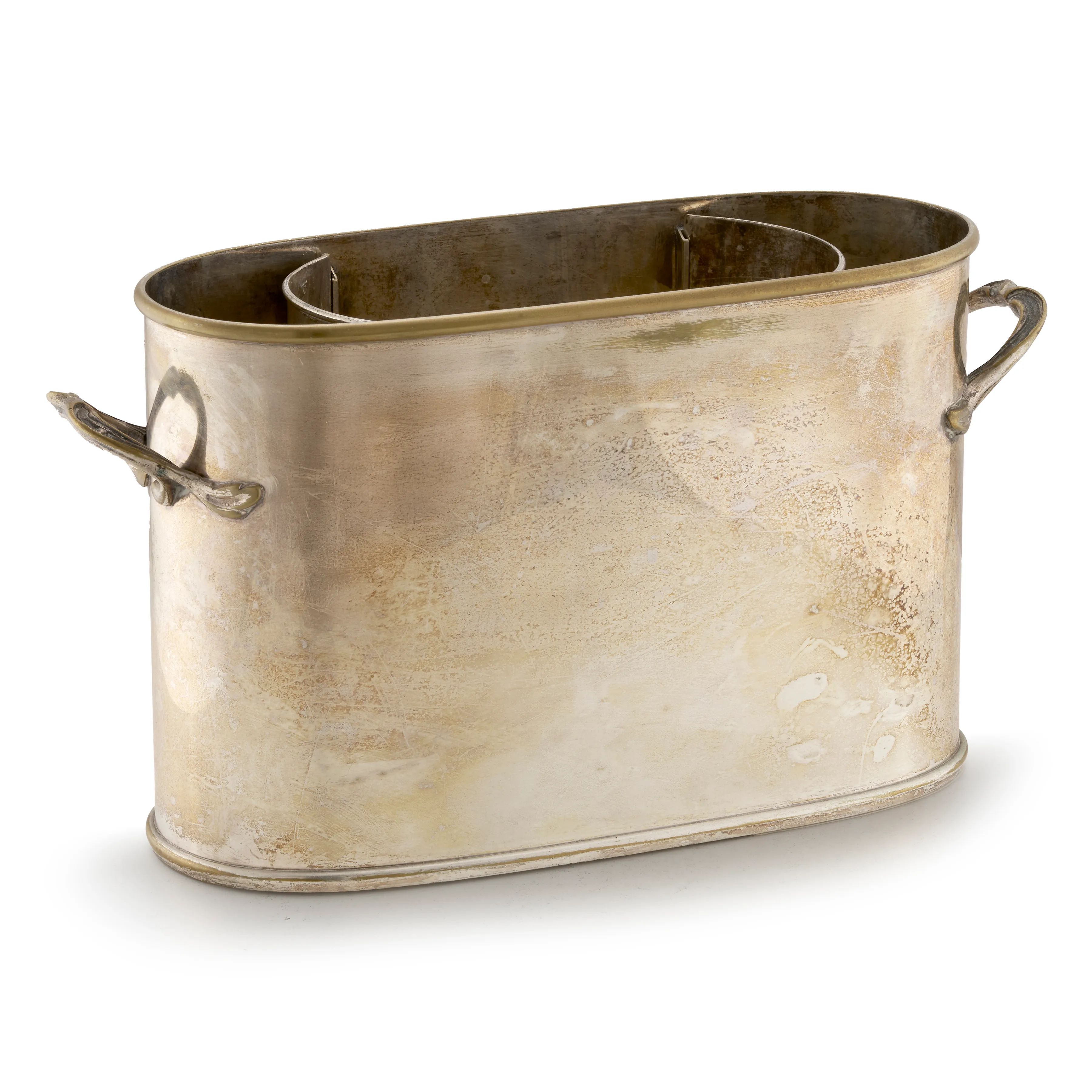 A SILVERED METAL BOTTLE HOLDER, 20TH CENTURY