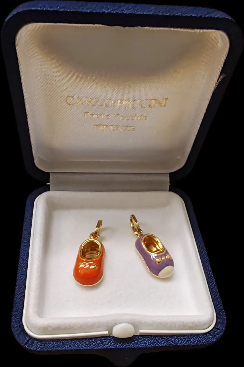 Piccoli ciondoli con 2 scarpette smaltate in oro giallo 18 kt, gr.2,40