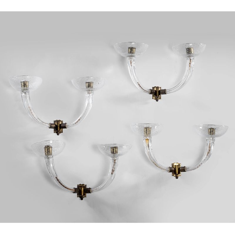 FOUR GLASS WALL LAMPS