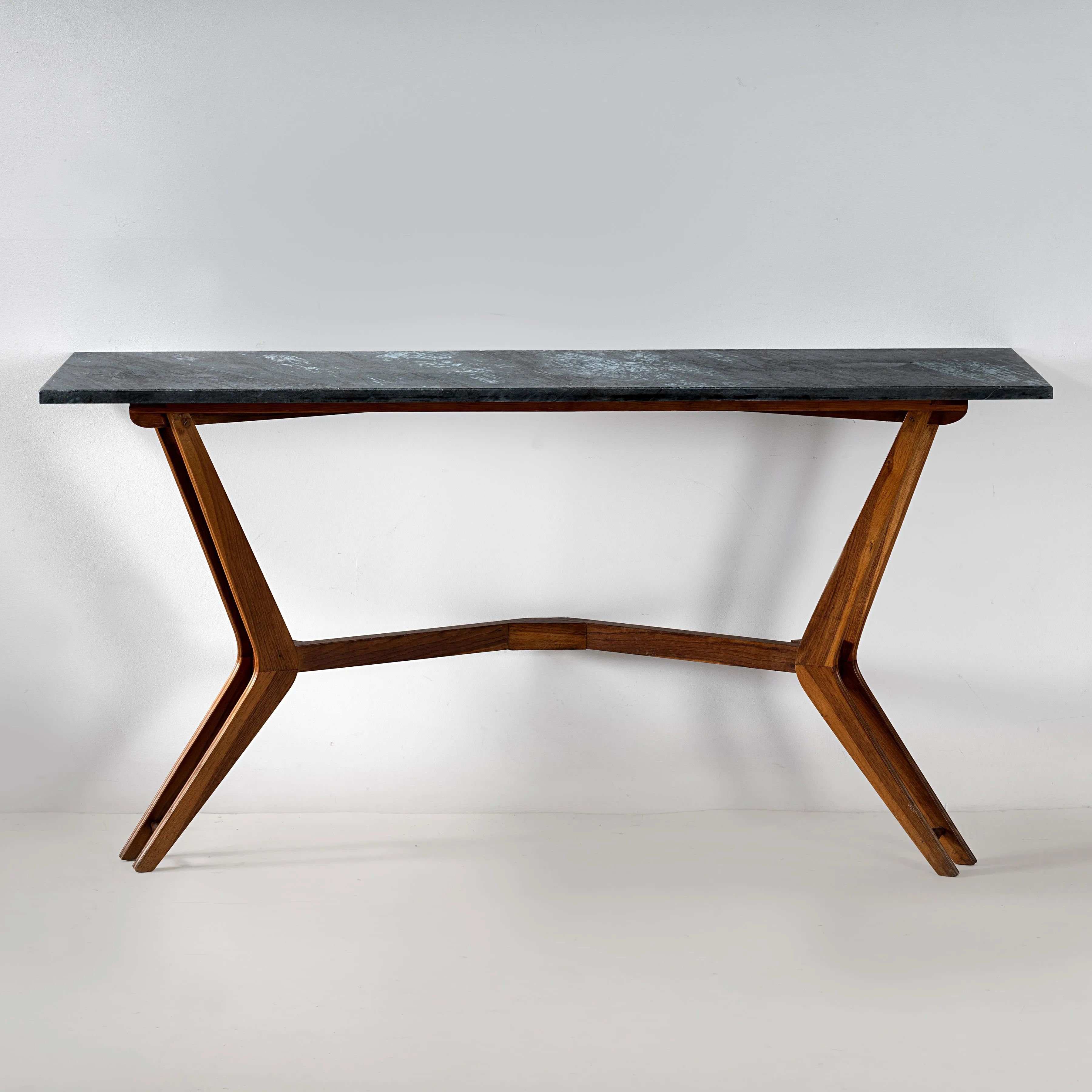 CONSOLLE, WOODEN STRUCTURE, GREEN MARBLE TOP