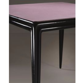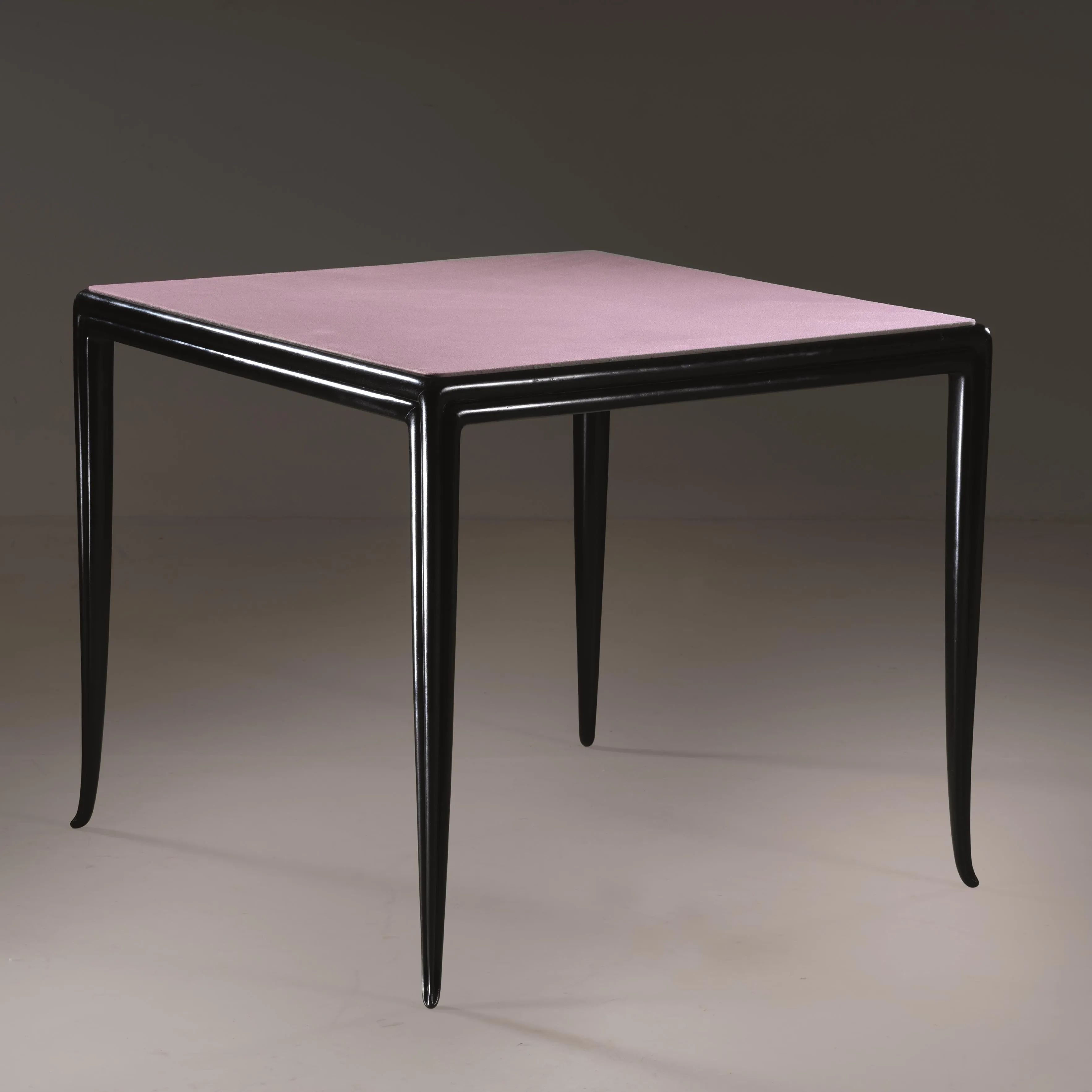 WOODEN GAMING TABLE, PINK FABRIC UPHOLSTERD TOP