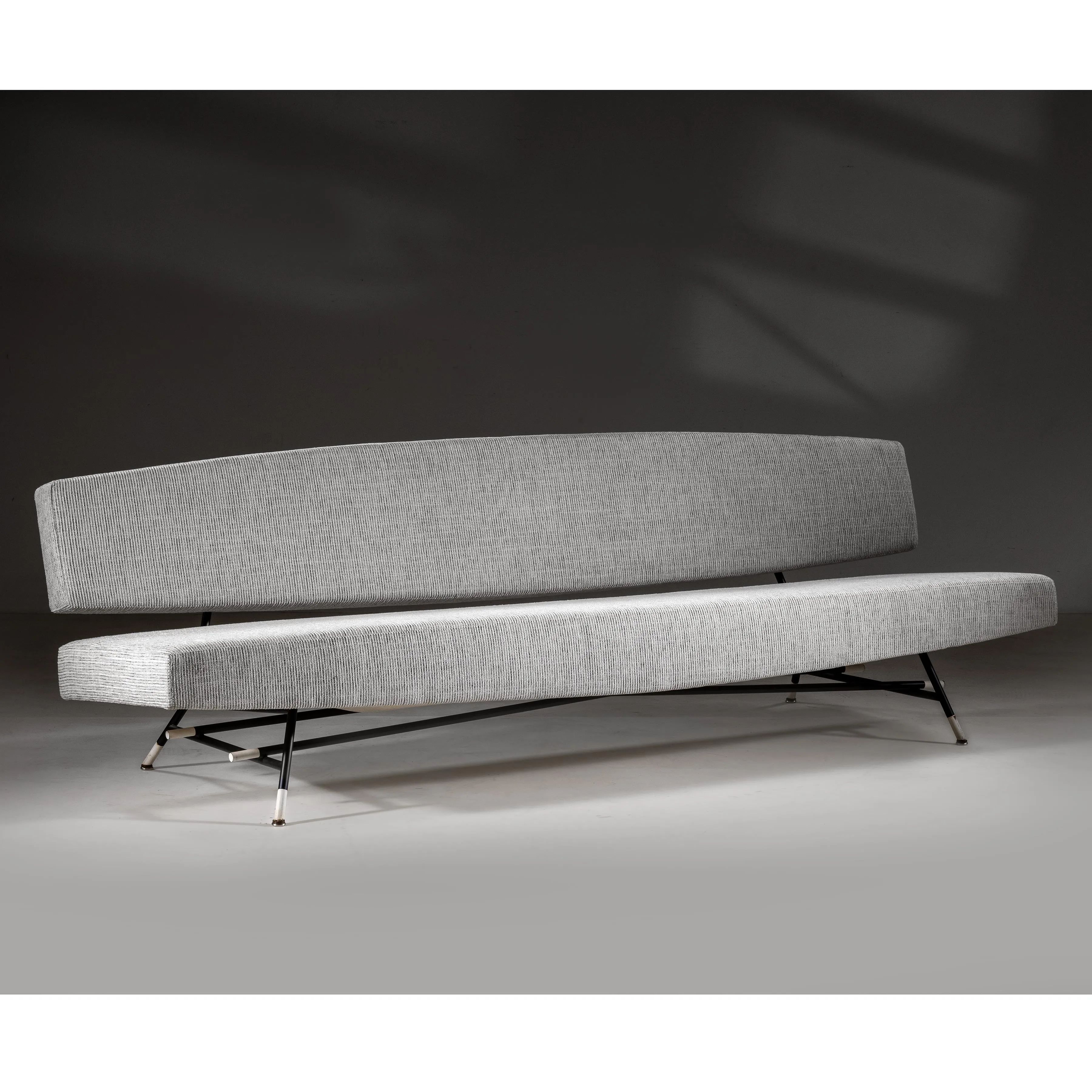 struttura in metallo, imbottito e rivestito in tessuto nei toni del grigio