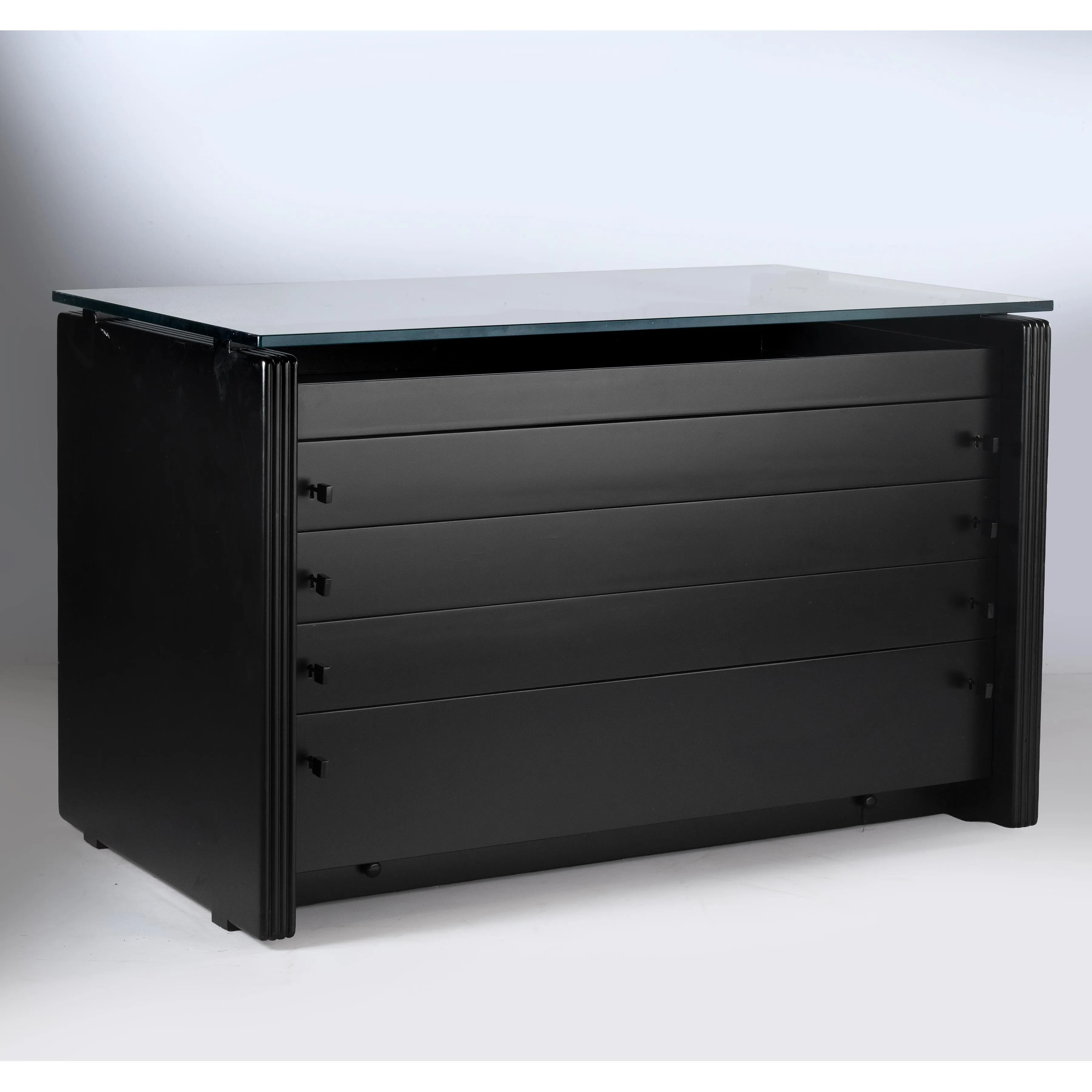 BLACK LACQUERED WOODEN CHEST OF DRAWERS