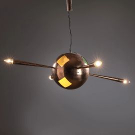 in ottone, rame e vetro colorato