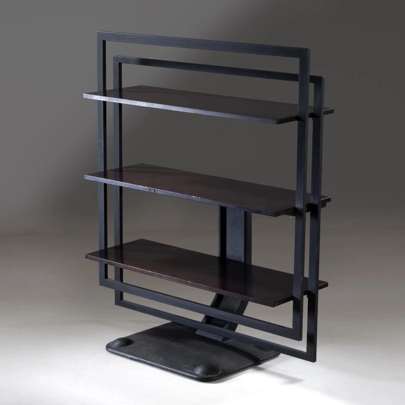 TABLE-BOOKCASE, METAL AND WOODEN STRUCTURE