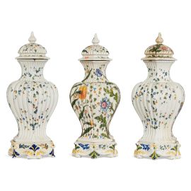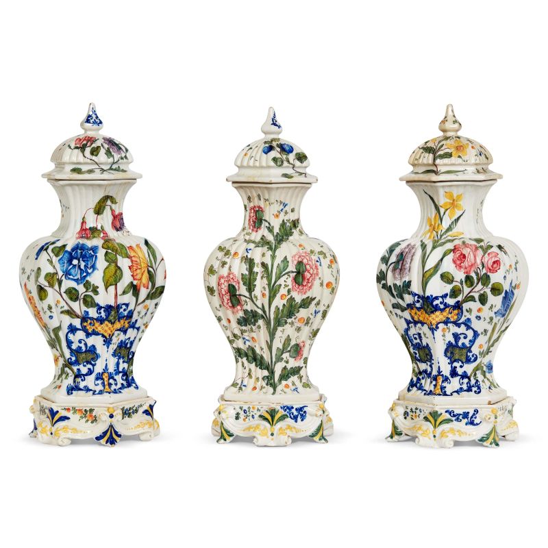 TRE POTICHE CON COPERCHIO, NOVE DI BASSANO, MANIFATTURA ANTONIBON, FINE SECOLO XIX