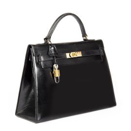 In pelle Boxcalf nera, modello di fine anni '50, con parti metalliche in oro. La sua silhouette mostra l'età del pezzo e proprio per questo lo rende veramente ricercato per la sua raffinatezza. Corredato di dustbag originale.
