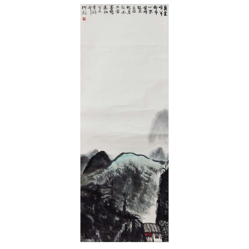 Raffiguranti paesaggi montani dipinti con inchiostro e colori tenui. I dipinti, che mostrano cime rocciose, specchi d'acqua e piccoli insediamenti, sono completati da ampie iscrizioni di calligrafia che bilanciano la composizione e aggiungono un valore artistico.
