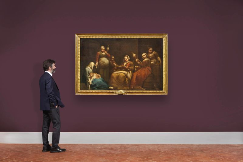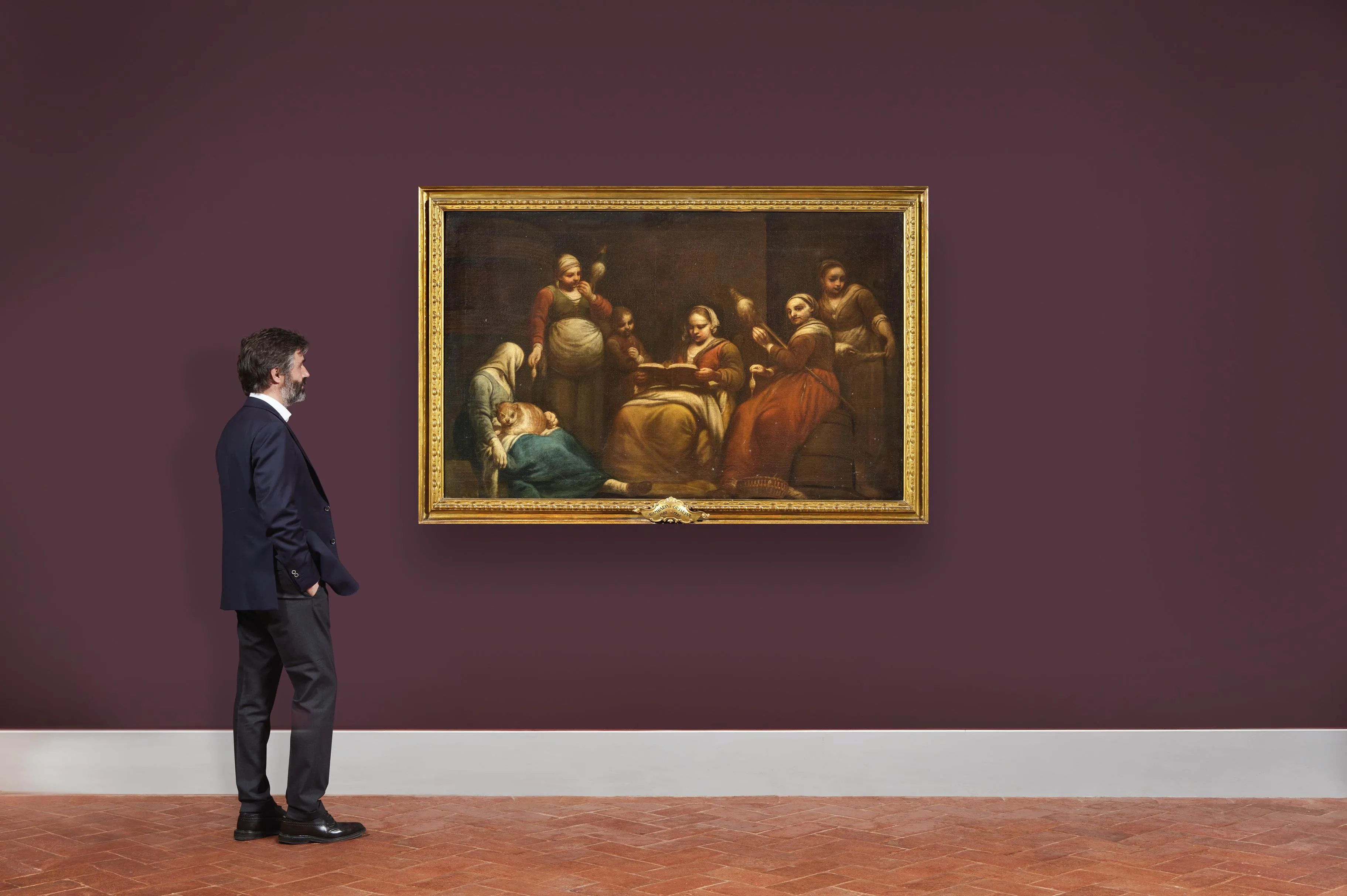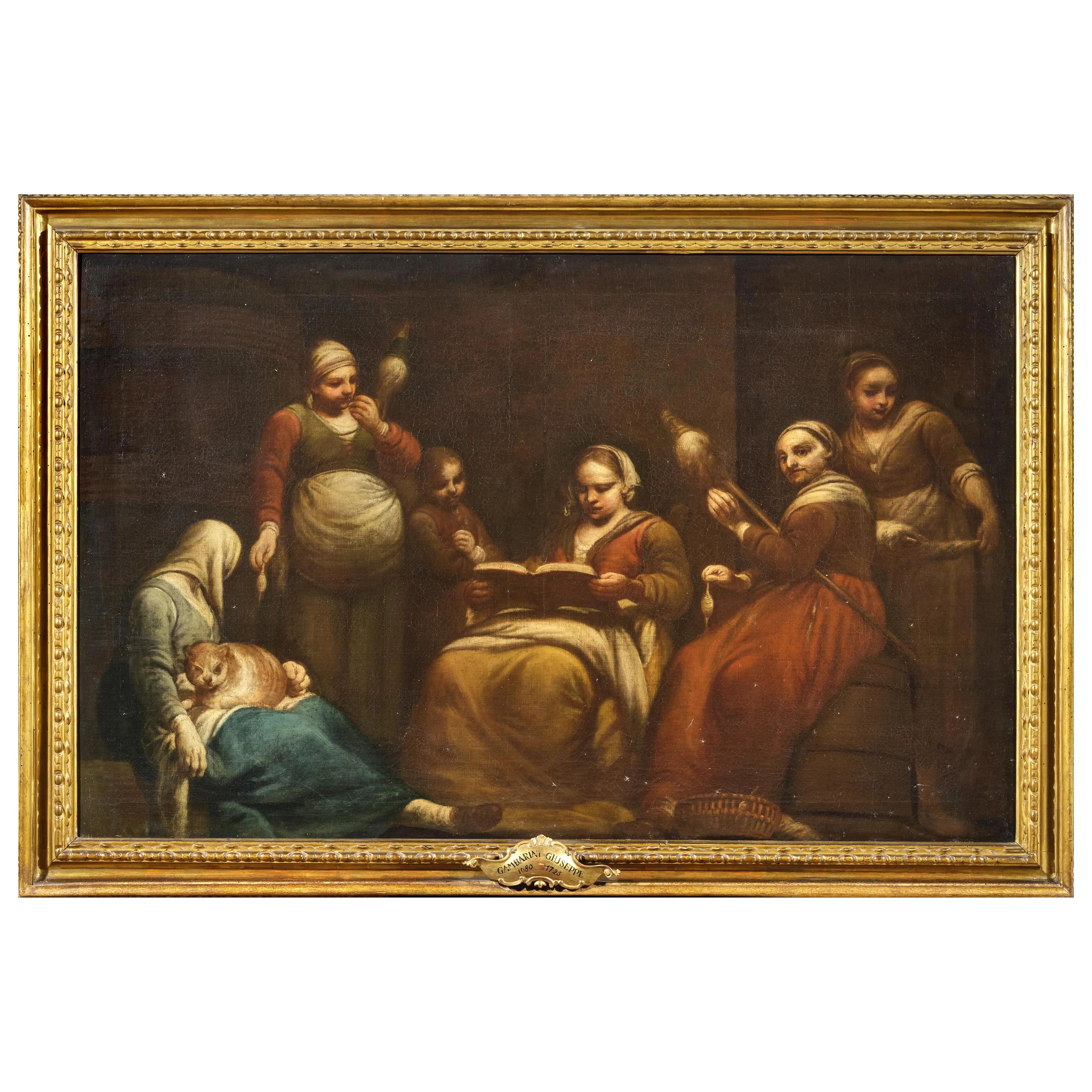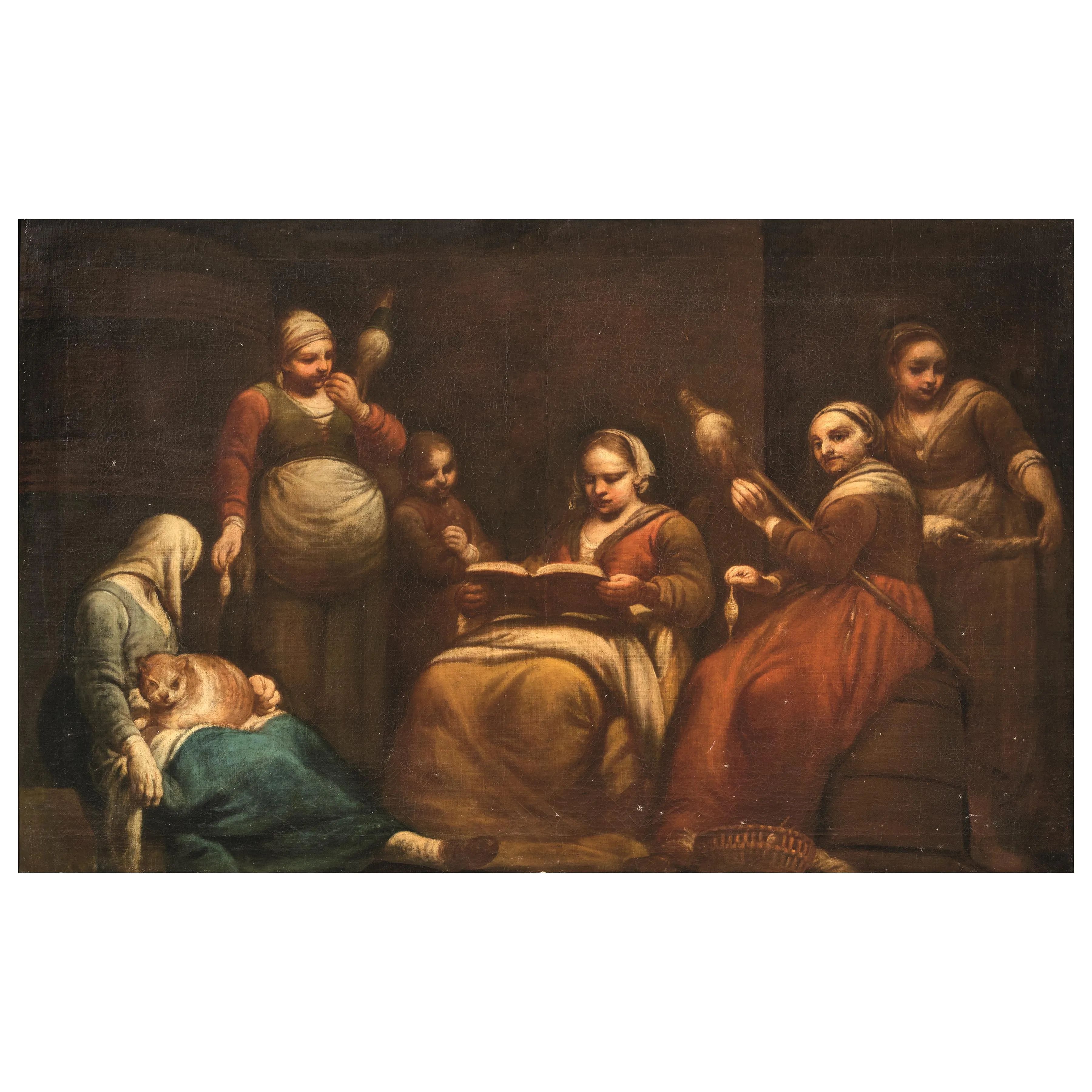SCENA DOMESTICA CON DONNE CHE FILANO E LETTRICE