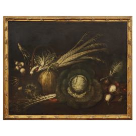 NATURA MORTA CON ORTAGGI, FUNGHI E PESCI