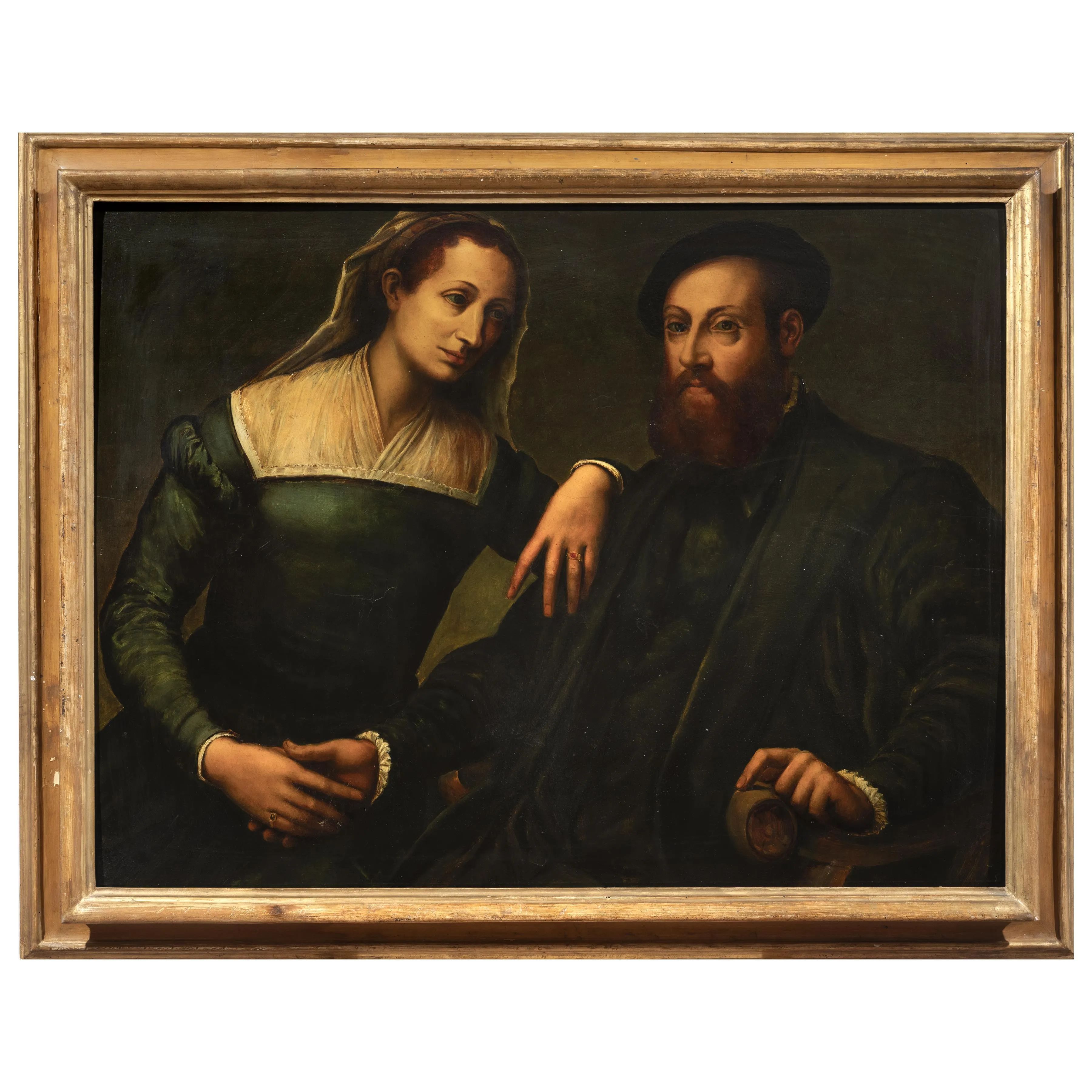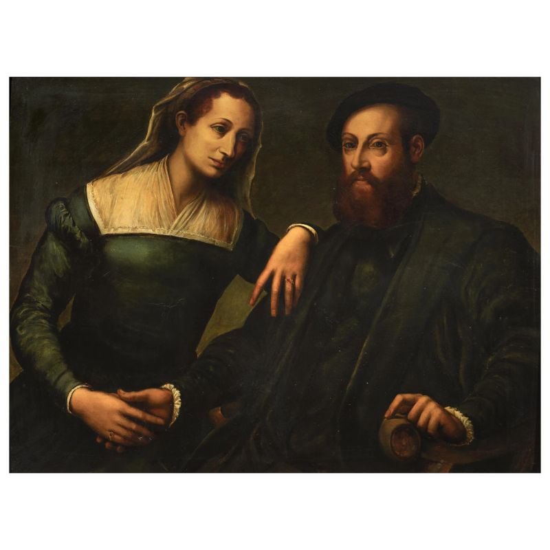 Il dipinto qui presentato vede contrapporsi un doppio ritratto, femminile e maschile. Una versione pressoché identica alla tavola qui discussa, attribuita al "circle of Sebastiano del Piombo", è conservata al Museum of Art di Columbus (cm 90,20x115,50), ma proviene dalla collezione del Cardinale Tommaso Ruffo di Ferrara (circa 1734).