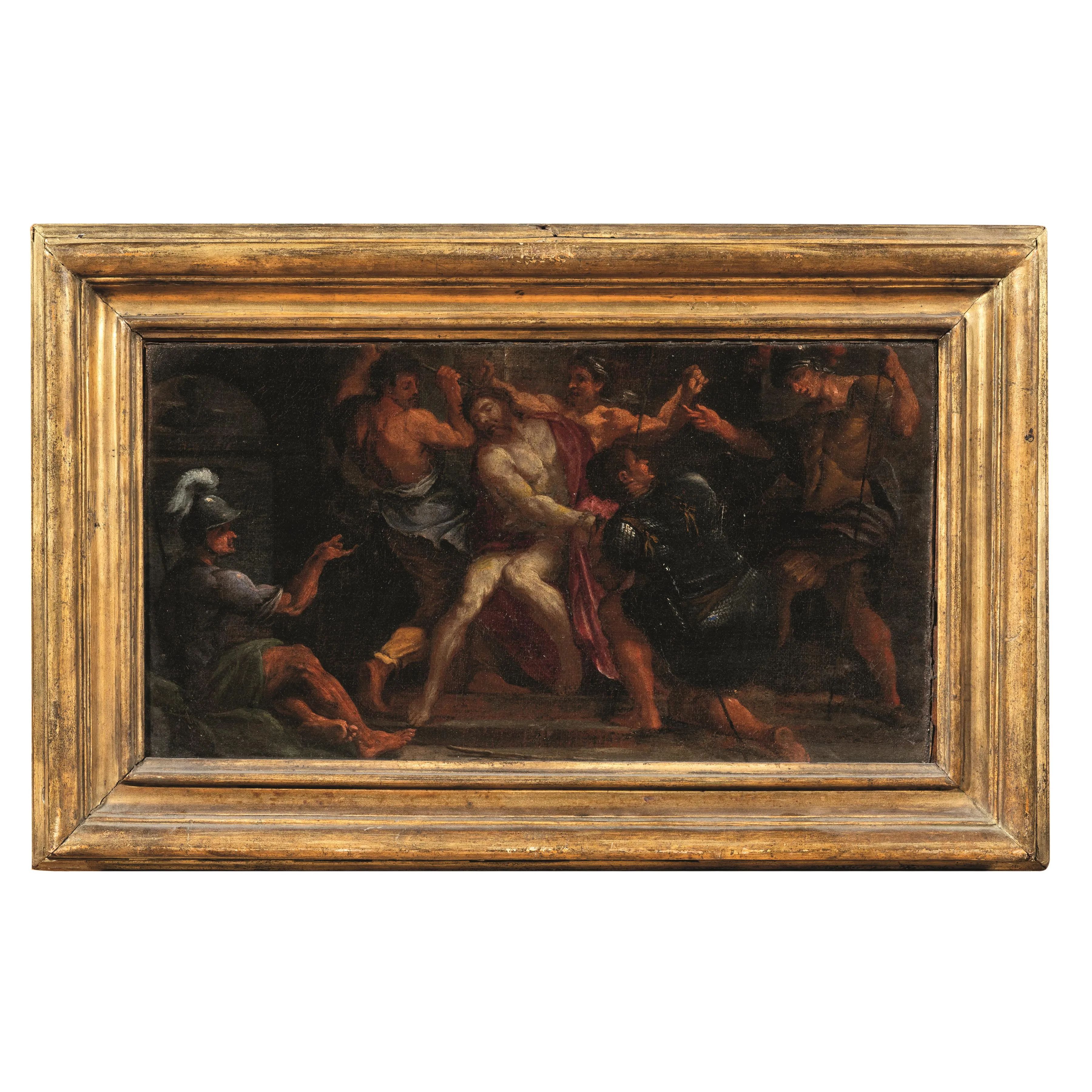 La piccola tela qui discussa è prossima per impaginazione iconografica alle tele di grande formato di Tiziano conservate a Monaco e Parigi. Differisce da quei due più alti modelli per la composizione orizzontale e l'aggiunta del Proconsole a sinistra, si tratta quindi di una tela che dilata lo spazio tizianesco per inserire nuove figure: è possibile vada ricondotta ad un pittore veneto di primo Seicento che avendo ben presente i modelli tizianeschi riformula l'impaginazione della scena.
