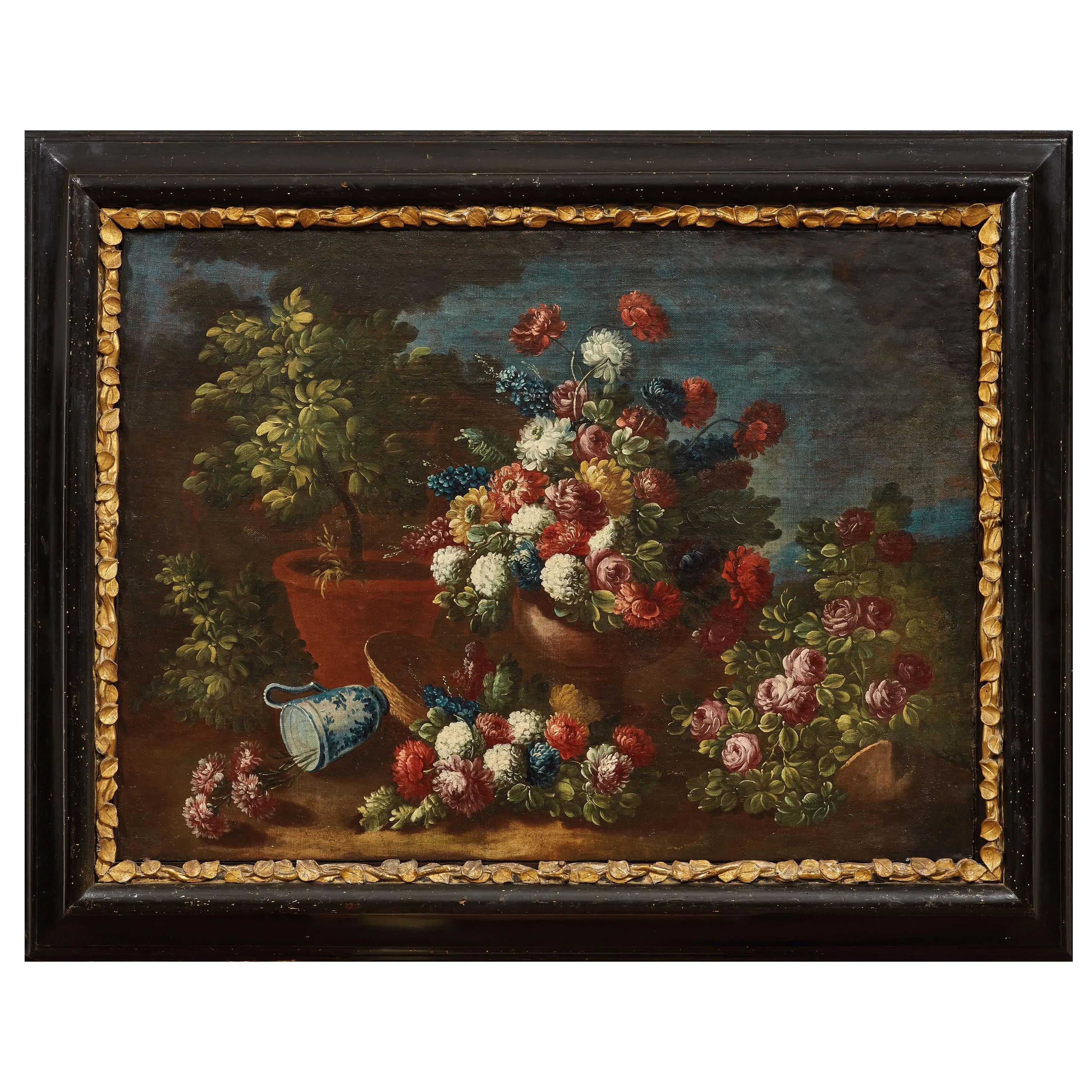 STILL LIFE EN PLEIN AIR WITH FLOWERS COMPOSITION