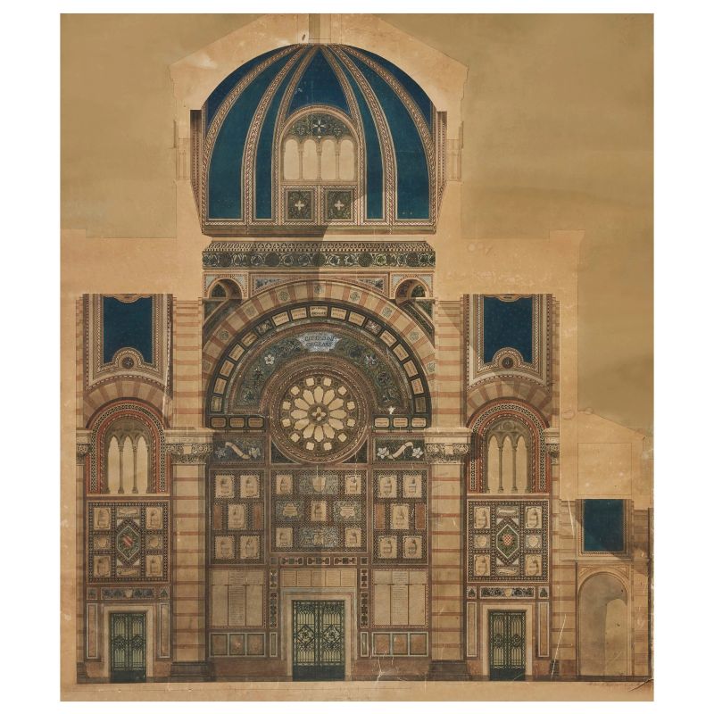 Il Famedio fu concepito come luogo di celebrazione della memoria civica, destinato ad accogliere i milanesi più illustri. Nato come edificio religioso, venne poi reinterpretato in chiave laica dopo l’Unità d’Italia, assumendo il ruolo di “pantheon civico”. Nel progetto, Maciachini adotta un linguaggio eclettico che fonde elementi gotici, romanici e bizantini, arricchiti da un raffinato uso di materiali policromi. Opera di grande interesse, testimonia efficacemente il processo creativo e progettuale dell’architetto.