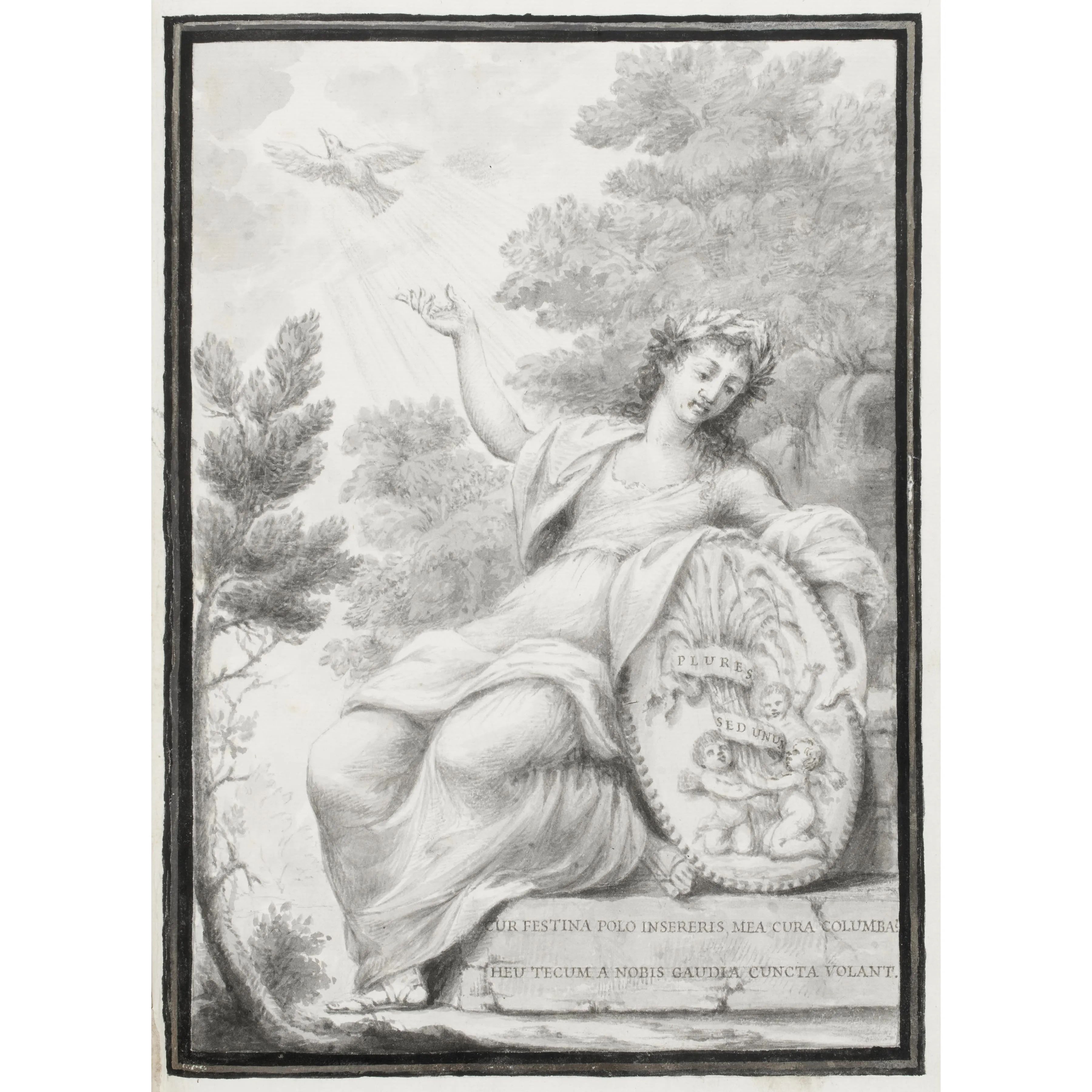 In quarto (235 x 173 mm); [76] pagine. Antiporta con bel disegno a china e acquerello en grisaille, testo entro cornici di doppio filetto. Legatura coeva in vitello spugnato con decorazione di ferri dorati, sui piatti cornice alla greca e fiori agli angoli, dorso liscio con titolo su tassello nocciola, tagli rossi, sguardie marmorizzate.