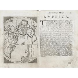 In ottavo (135 x 90 mm); [8], 232, [16] pagine. 108 carte geografiche a piena pagina incise in rame (foro di tarlo con parziale perdita di parte incisa su due fascicoli, piccoli strappi, qualche macchia.) Legatura coeva in piena pergamena (sciupata, mancanze al dorso). Note di possesso di Giovanni Paolo Riva, 1747.