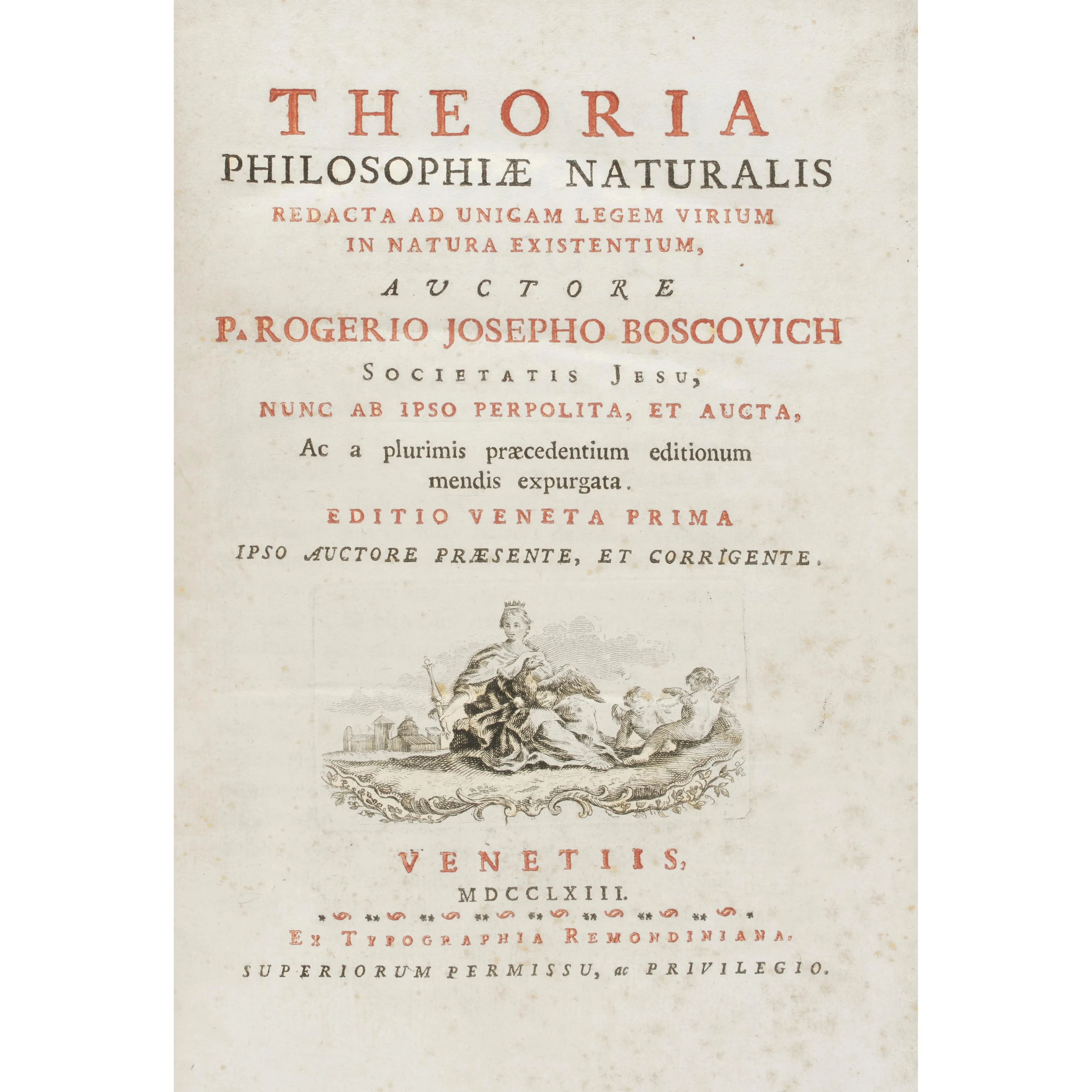 Boscovich, Ruggero Giuseppe. Theoria philosophiae naturalis redacta ad unicam legem virium in natura existentium. Venezia, Remondini, 1763.