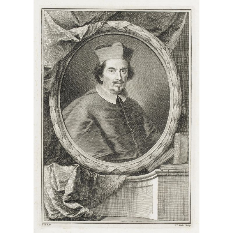 In quarto (285 x 200 mm); [16], XXXII, 629, [1] pagine. Antiporta con il ritratto dell'autore inciso in rame, marca tipografica al frontespizio (sporadiche macchie, poche fioriture.) Legatura coeva in bazzana con decorazione dorata, due cornici di doppio filettato e fleurons agli angoli sui piatti, fregi e titolo in oro su tassello rosso al dorso, tagli dorati, labbri decorati, sguardie policrome (piccole mancanze). Timbro G.A. Leban, Trieste.