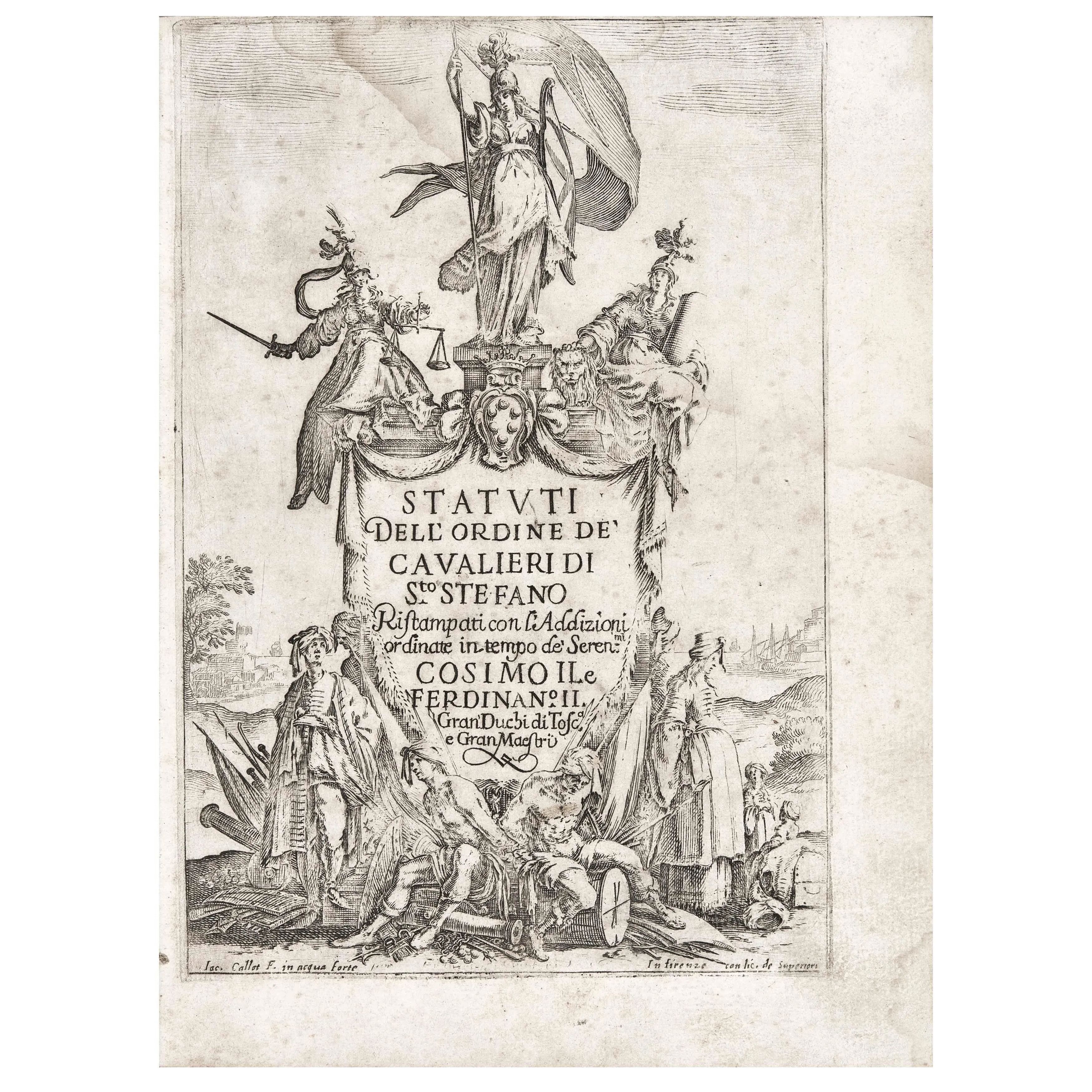 Statuti dell'ordine de' cavalieri di S.to Stefano. Firenze, Onofri, 1665.